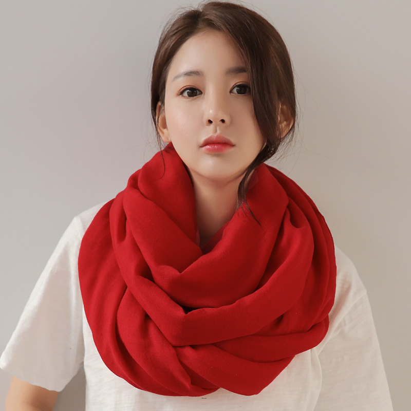 봄과 가을 슈퍼 대형면 및 리넨 스카프 단색 민족 스타일 해변 휴일 선 스크린 목도리 비치 스카프 실크 스카프 여성스토어 가기