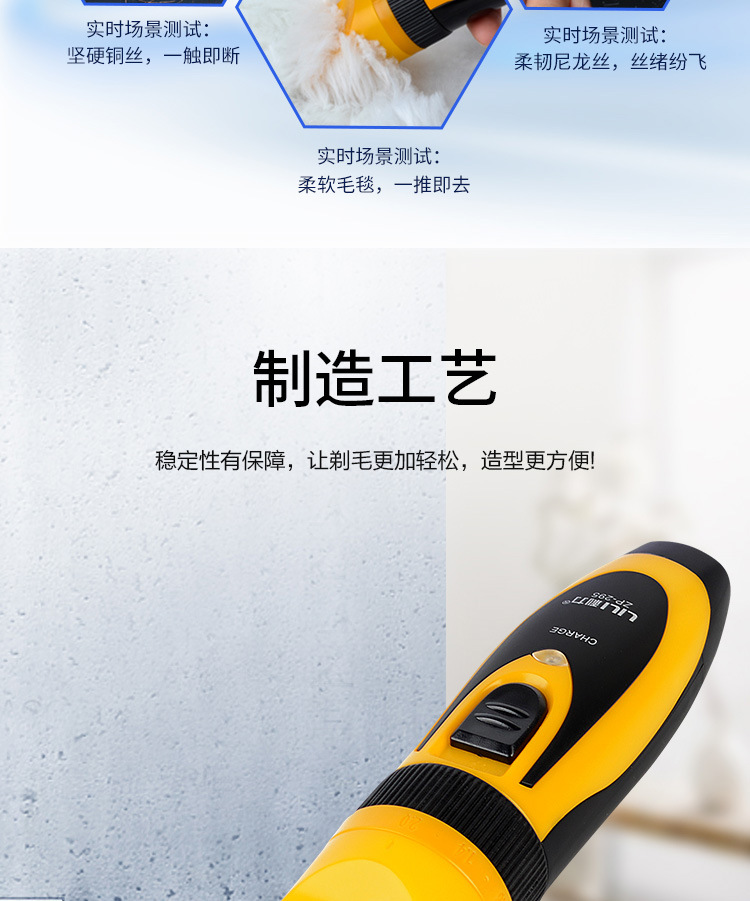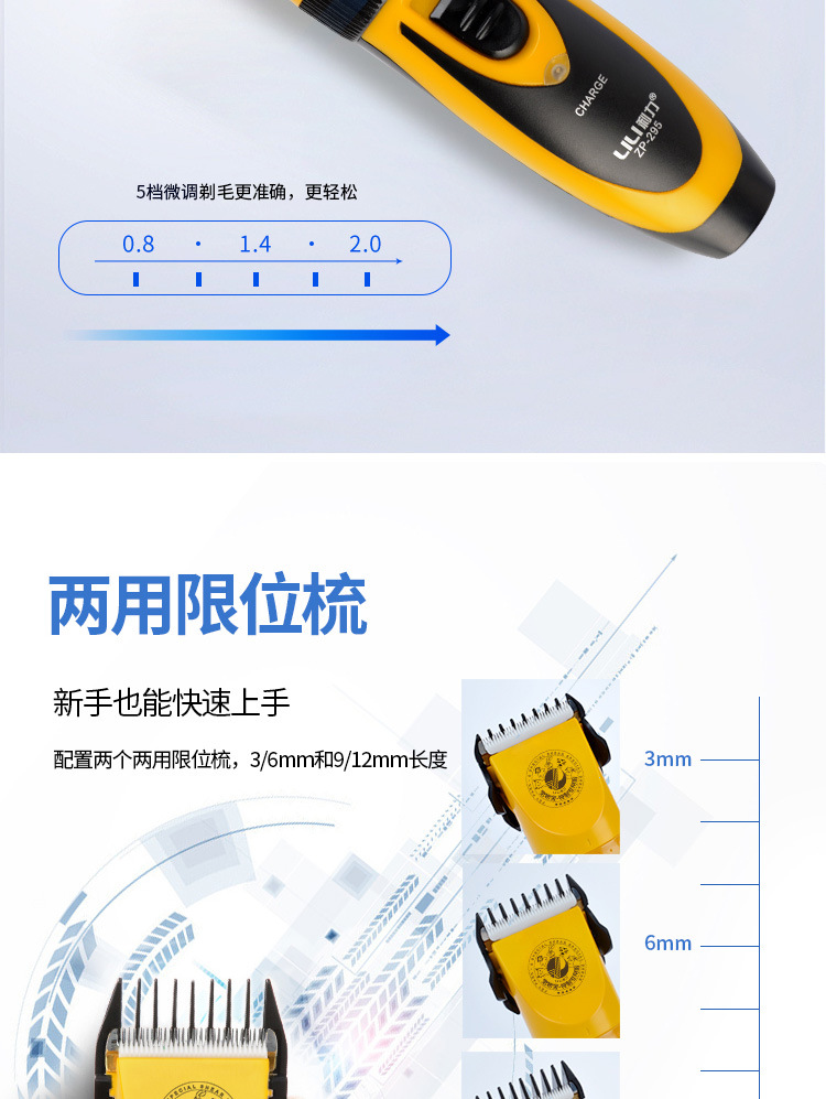 ●Accessories:USB charging cable,Lubricating oil,Cleaning brush,Dual-use limit combs(3&6;9&12mm),User manual