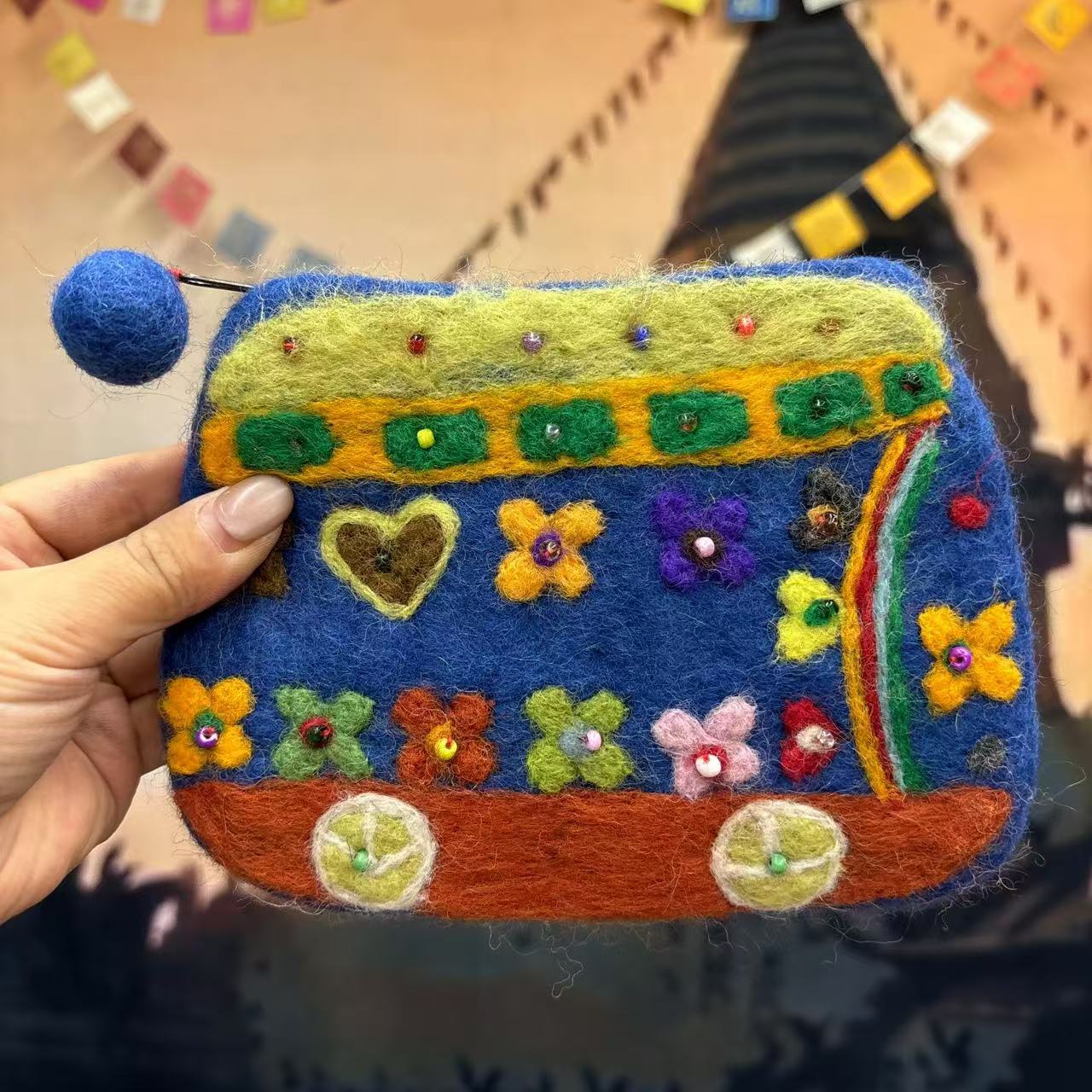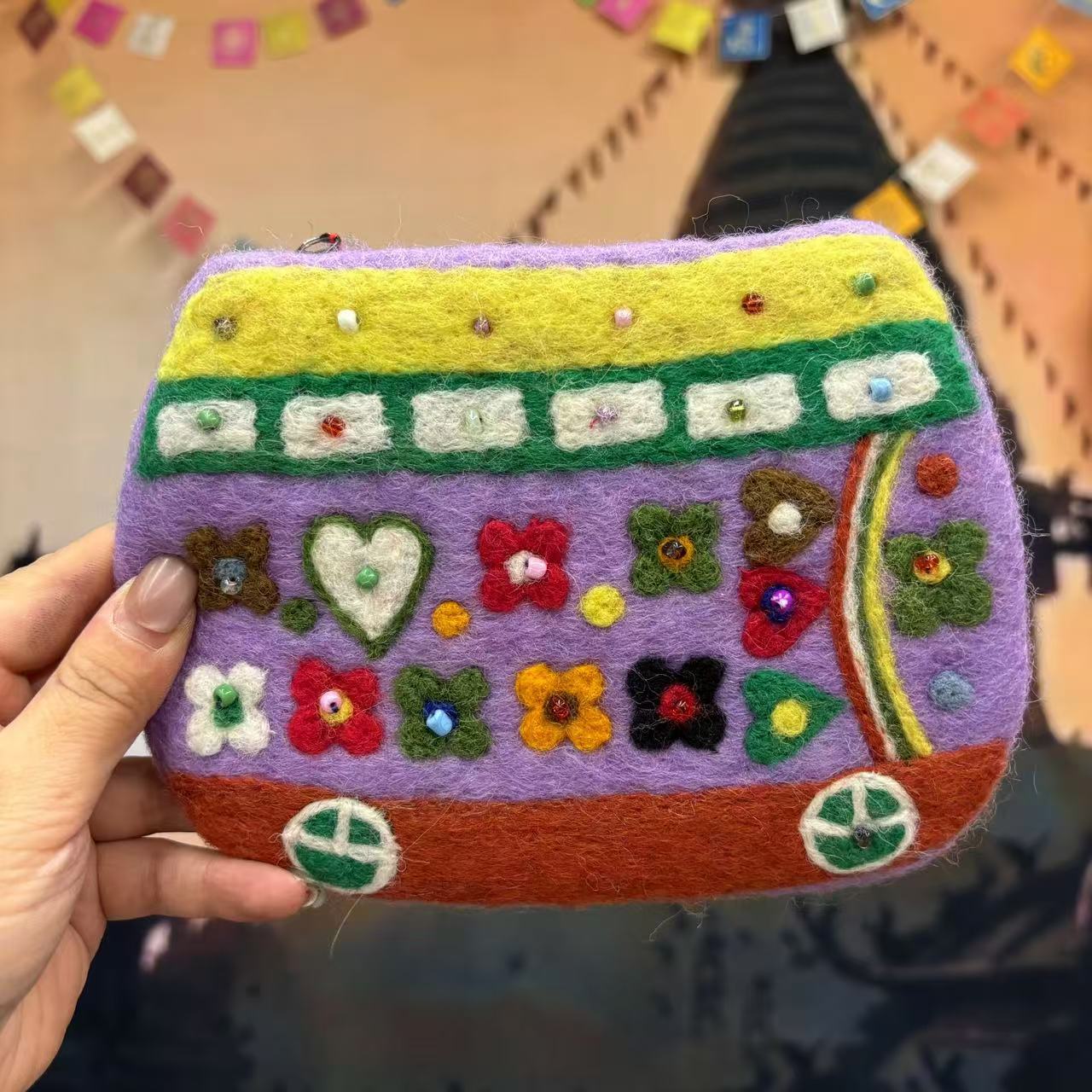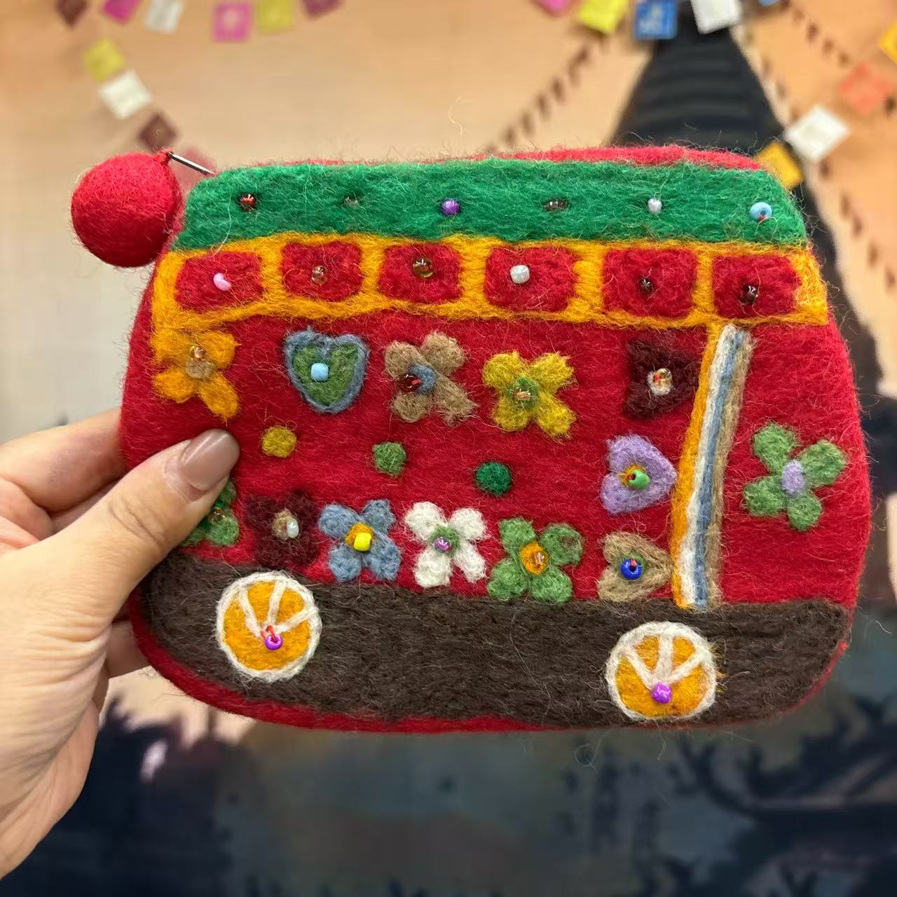 양모 펠트 자동차 버스 동전 지갑 완제품 스탬프 르 동전 지갑 귀여운 만화 카드 가방스토어 가기
