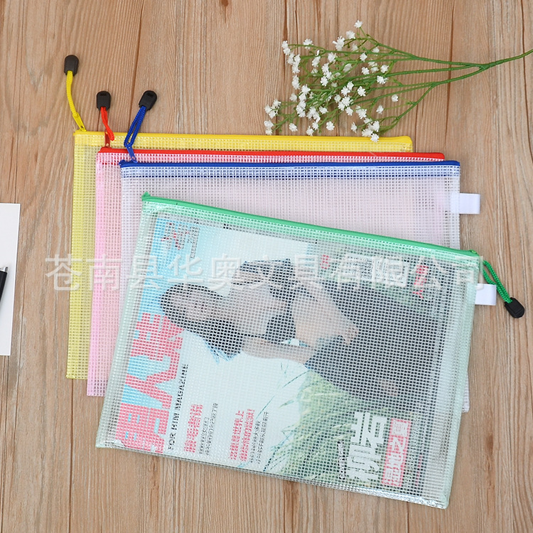 공장 그리드 지퍼 파일 가방 데이터 저장 가방 PVC 투명 지퍼 가방 사무실 문구 가방 재고 도매스토어 가기