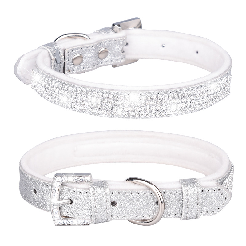 벨벳 인테리어 애완 동물 칼라 빛나는 모조 다이아몬드 개 목걸이 부드러운 편안한 개 가죽 끈 아마존 뜨거운 판매스토어 가기