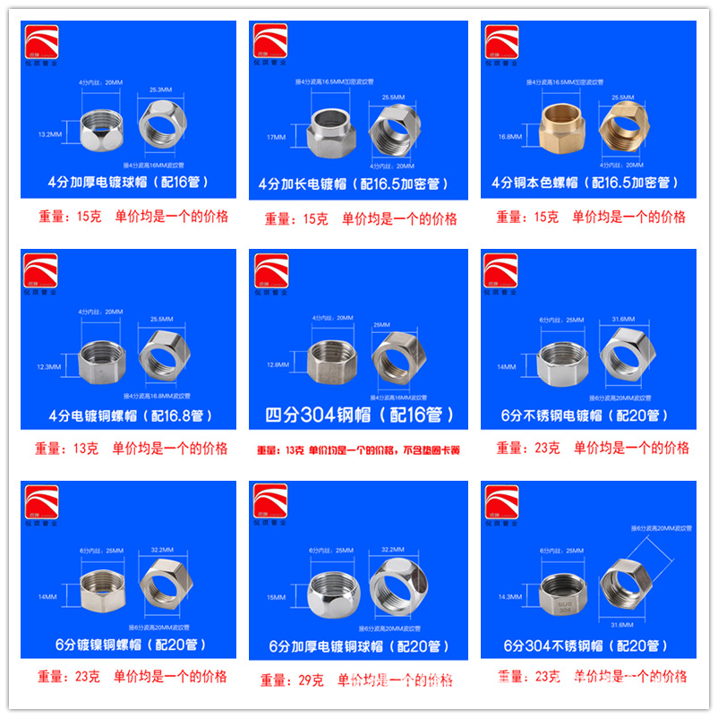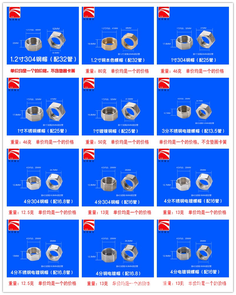 以上标价里的尺寸都是螺帽内口径,可根据波纹管外径测量。