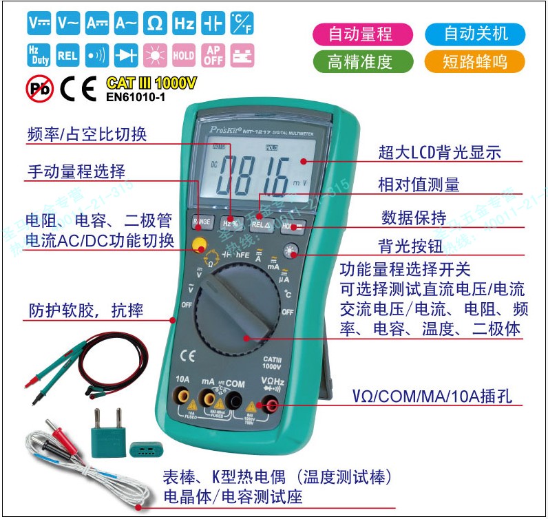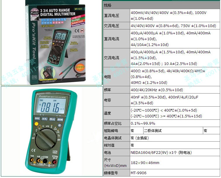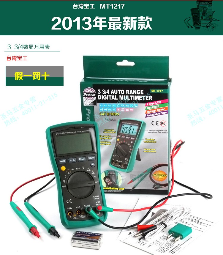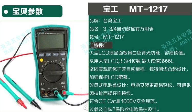 대만 Baogong 디지털 멀티 미터 대형 스크린 디지털 디스플레이 3 3/4 자동 범위 디지털 미터 MT-1217