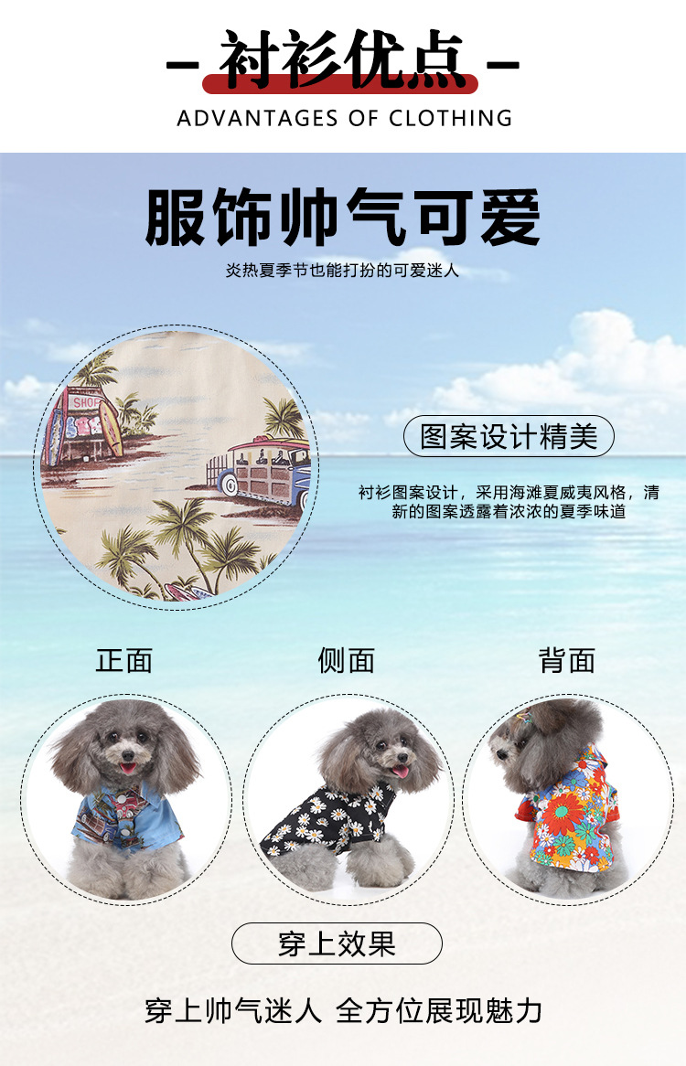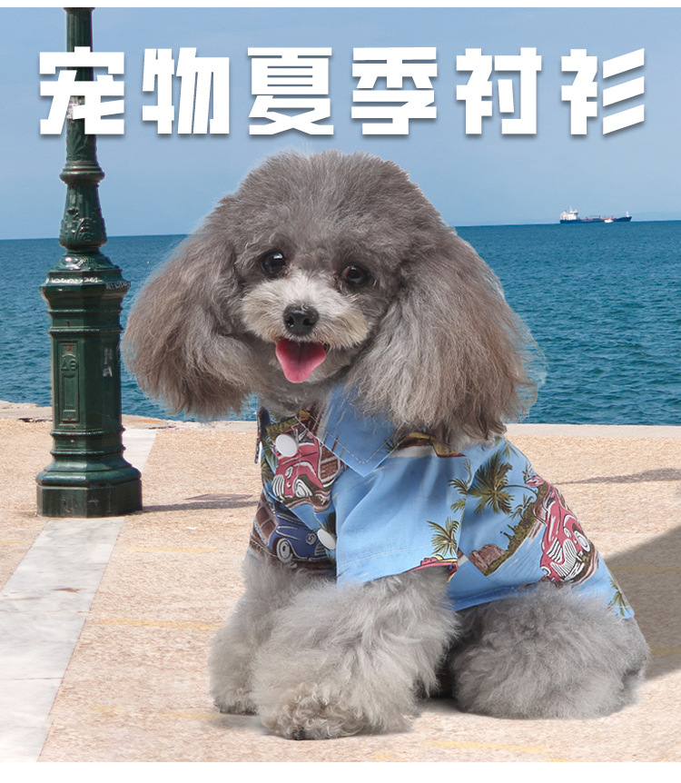 강아지 옷 가을 여름 얇은 애완동물 의류 해외배송 하와이안 프린트 셔츠 강아지 옷 애완견 의류스토어 가기