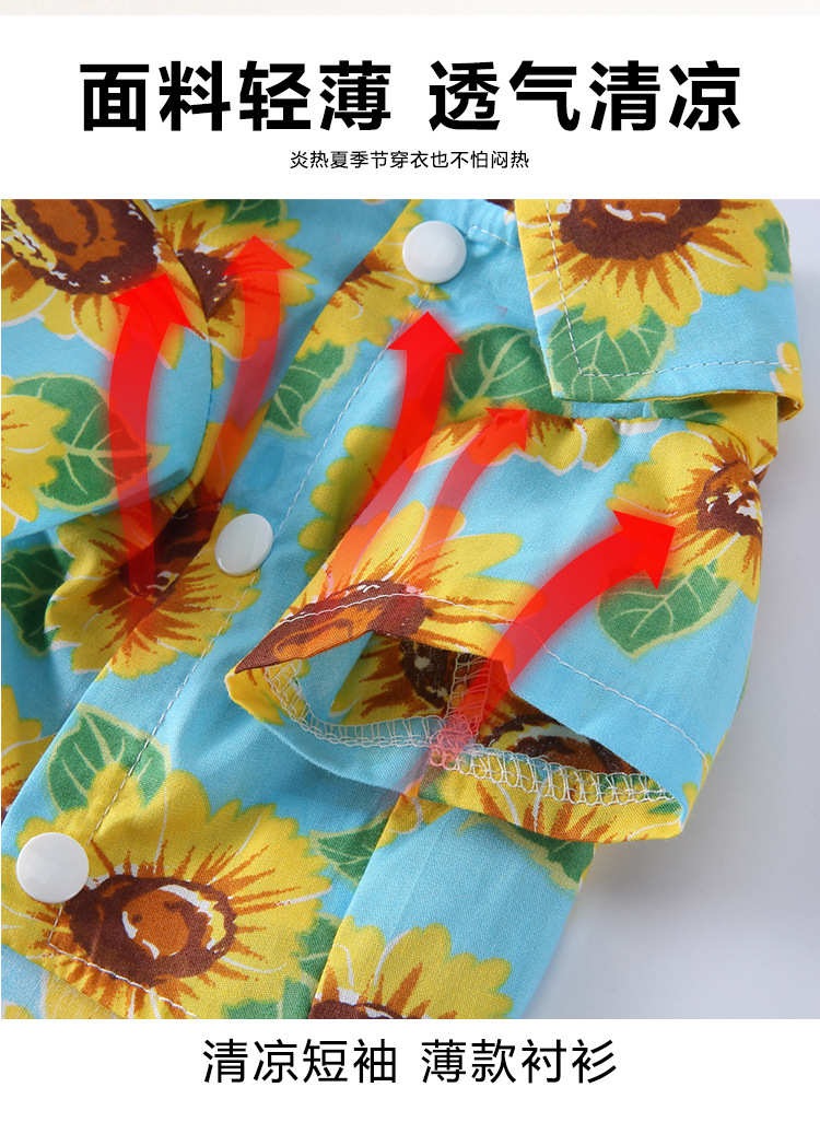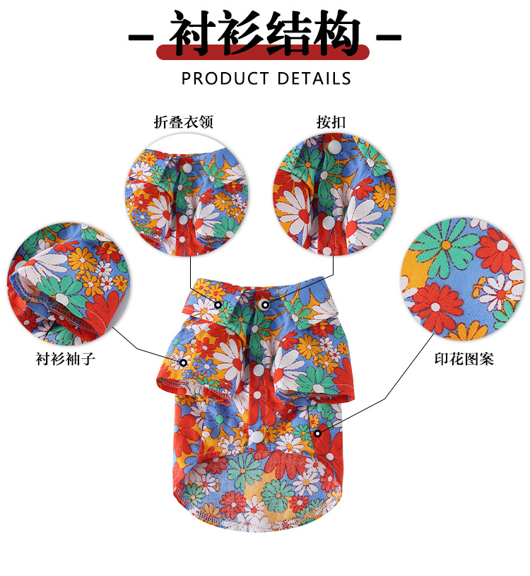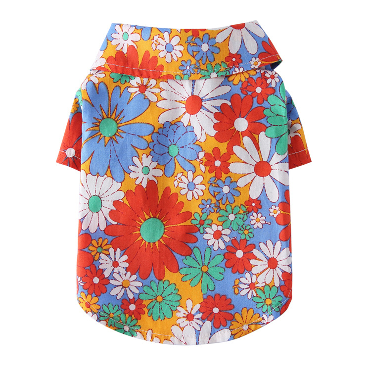 강아지 옷 가을 여름 얇은 애완동물 의류 해외배송 하와이안 프린트 셔츠 강아지 옷 애완견 의류