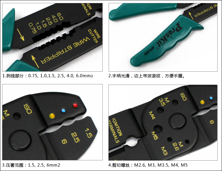 [대만 Baogong] 4-in-1 다기능 펜치 와이어 스트리핑 전단 압착 펜치 와이어 스트리핑 펜치 8PK-033
