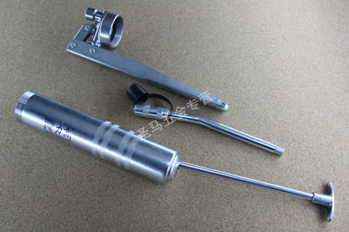 -所有的挤油轴采用小直径铬钒钢,精密加工,与出油镗孔精密配合,压力特大,打油特别轻松。枪头部分仅用一整块浇铸而成,可承受最大的爆裂,压力1200帕。