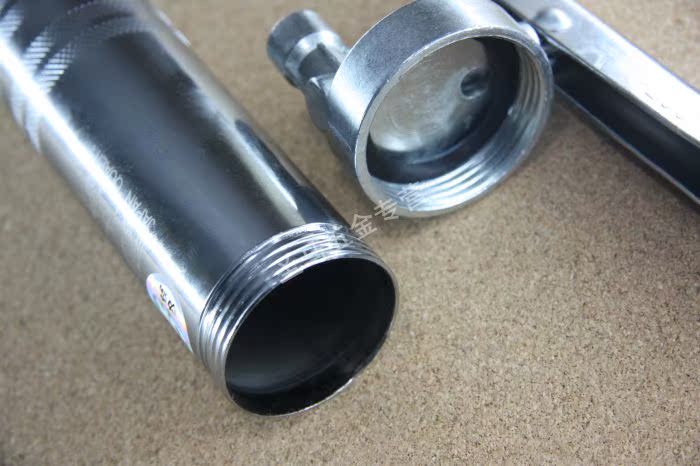 -所有公母螺牙均用数控机床精确加工,精密组合。枪头与出油之硬管、软管采用锥度牙组合,越迫越紧,绝对不会漏油。
