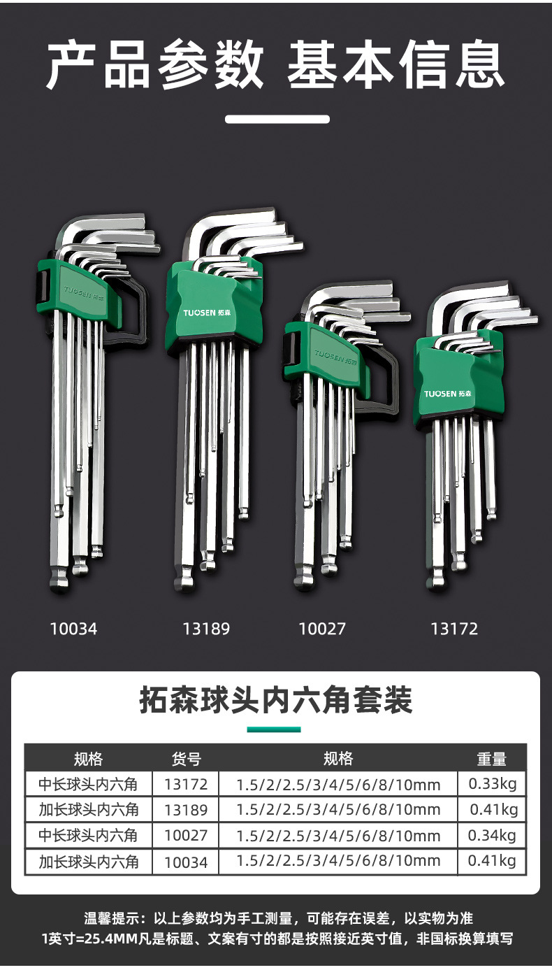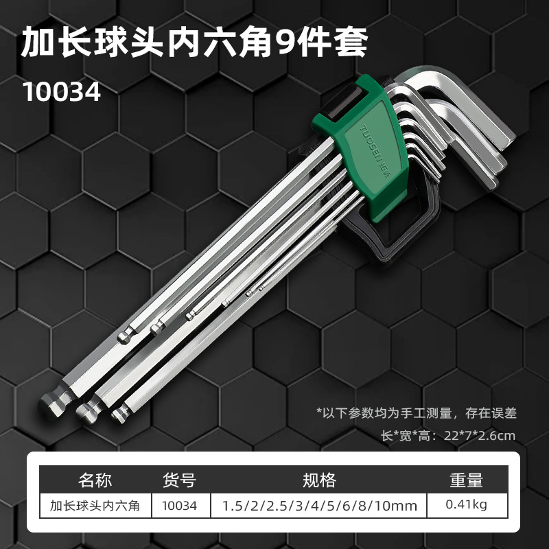 • 10034, 확장 볼 헤드 육각형 9개 세트, 12개/박스, 60개/개, 0.41Kg