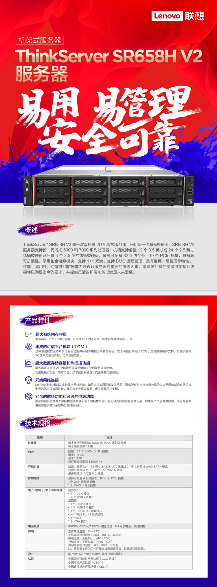 레노버 레노버 SR658H V2 국내 Xinchuang 2U 랙 서버 듀얼 채널 Haguang 7380 증권