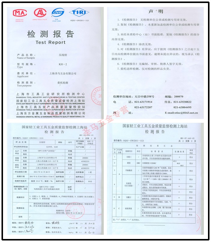 国内唯一附检测报告的压接钳,质量超群!