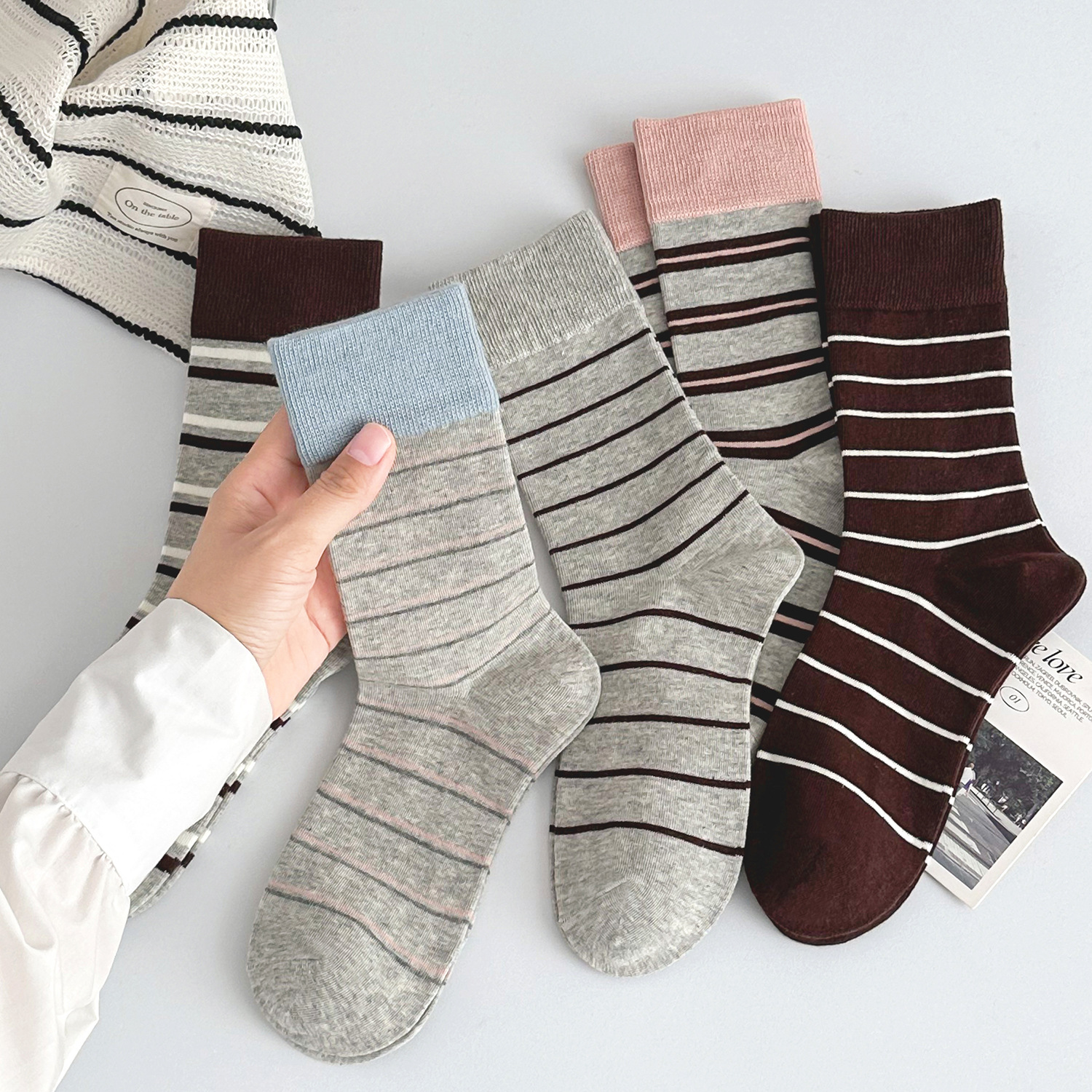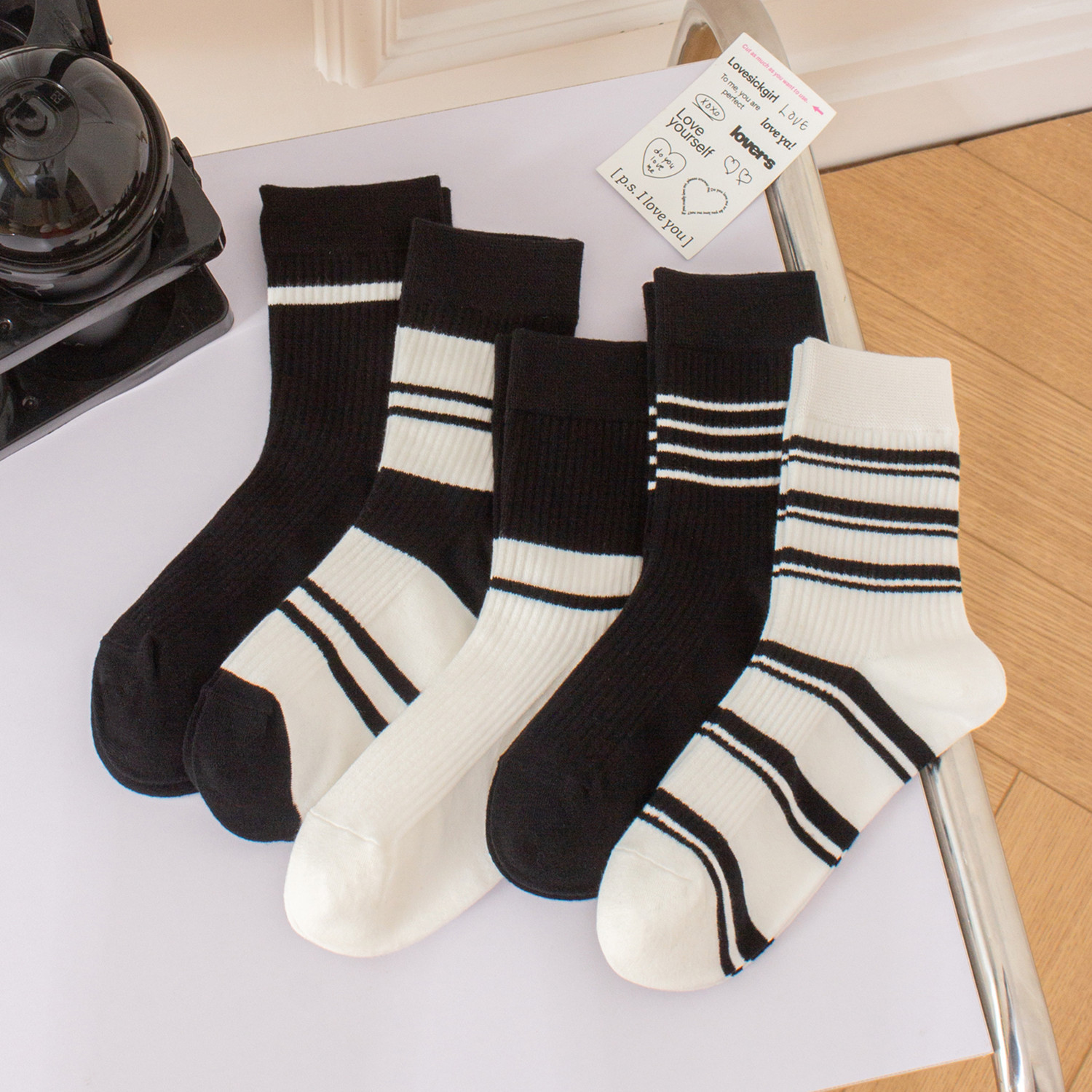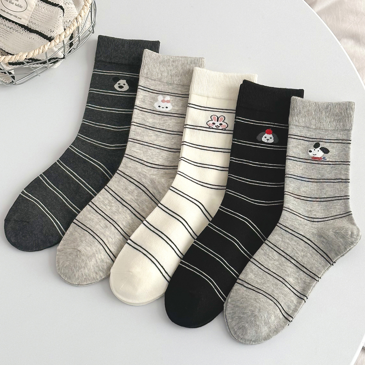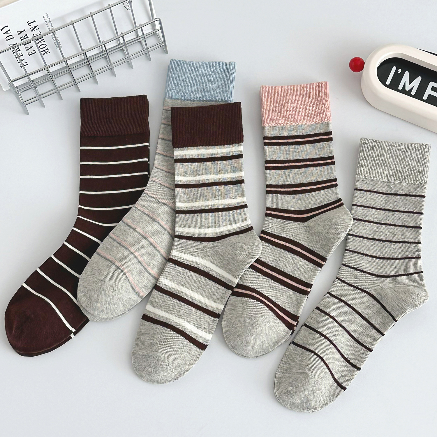 국내 트렌드 창의적이고 재미있는 레트로 스타일 인스타 감성 중간 길이 면 양말 하이삭스 트렌디 양말 도매 여성용 인스타 스타일스토어 가기