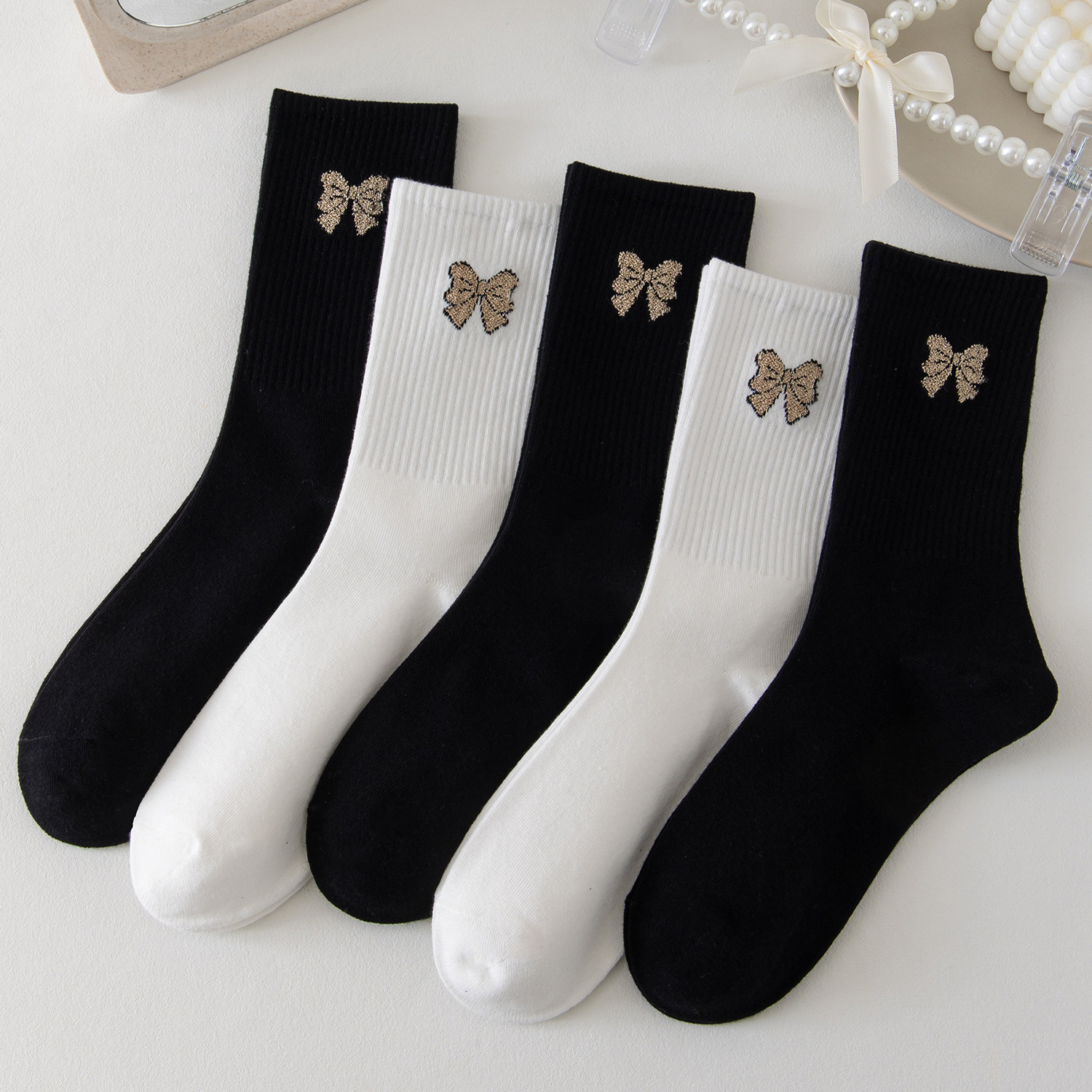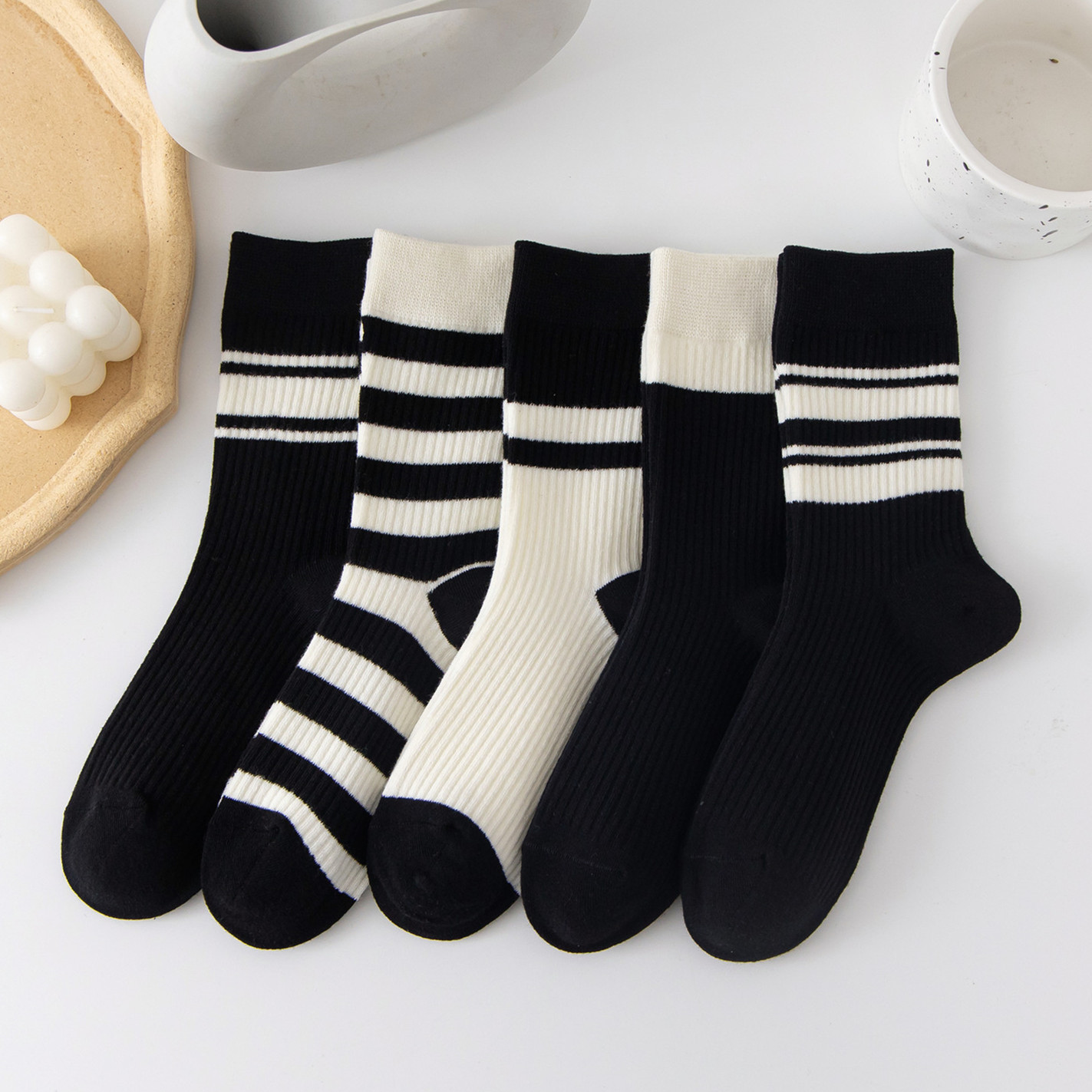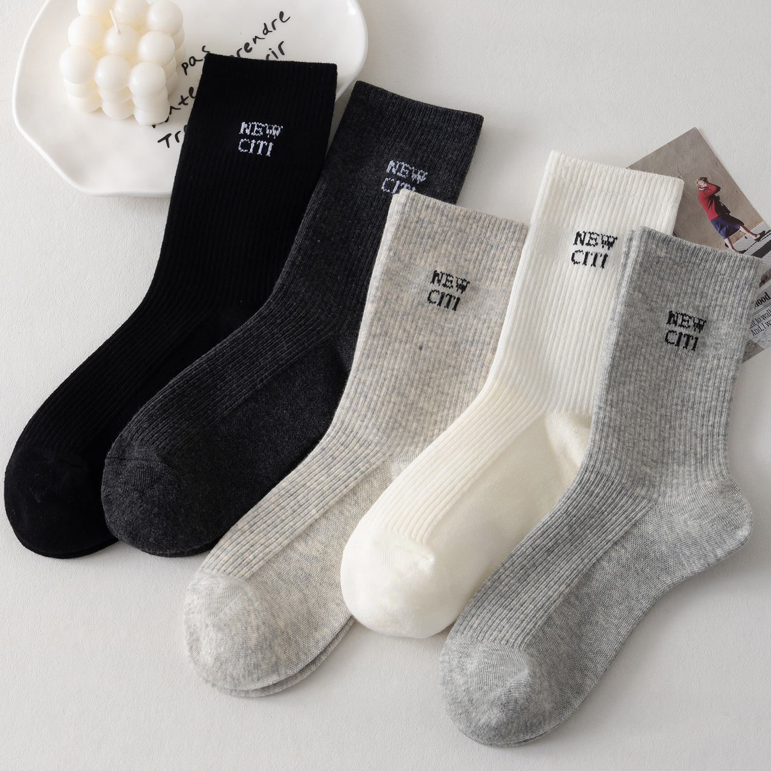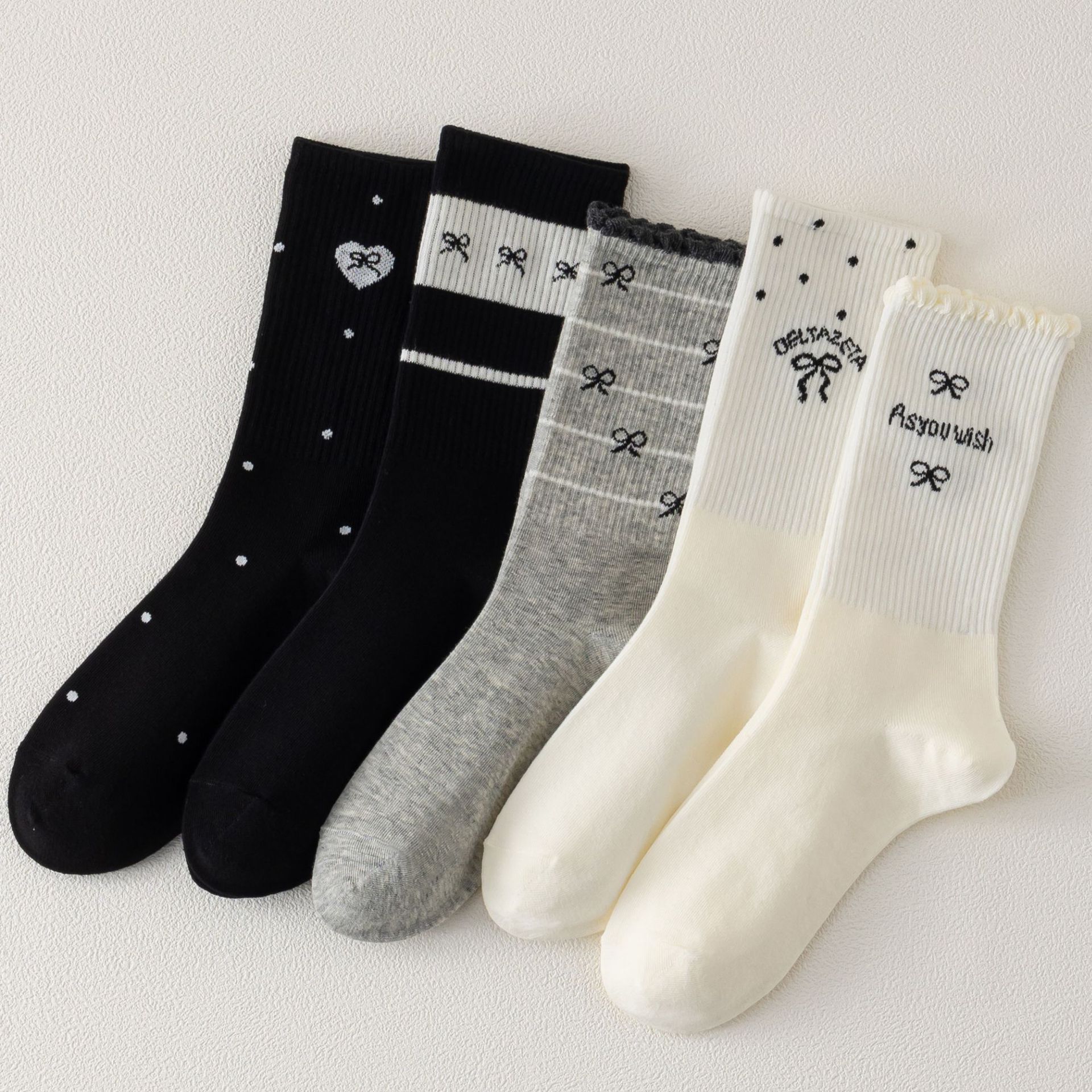 국내 트렌드 창의적이고 재미있는 레트로 스타일 인스타 감성 중간 길이 면 양말 하이삭스 트렌디 양말 도매 여성용 인스타 스타일스토어 가기