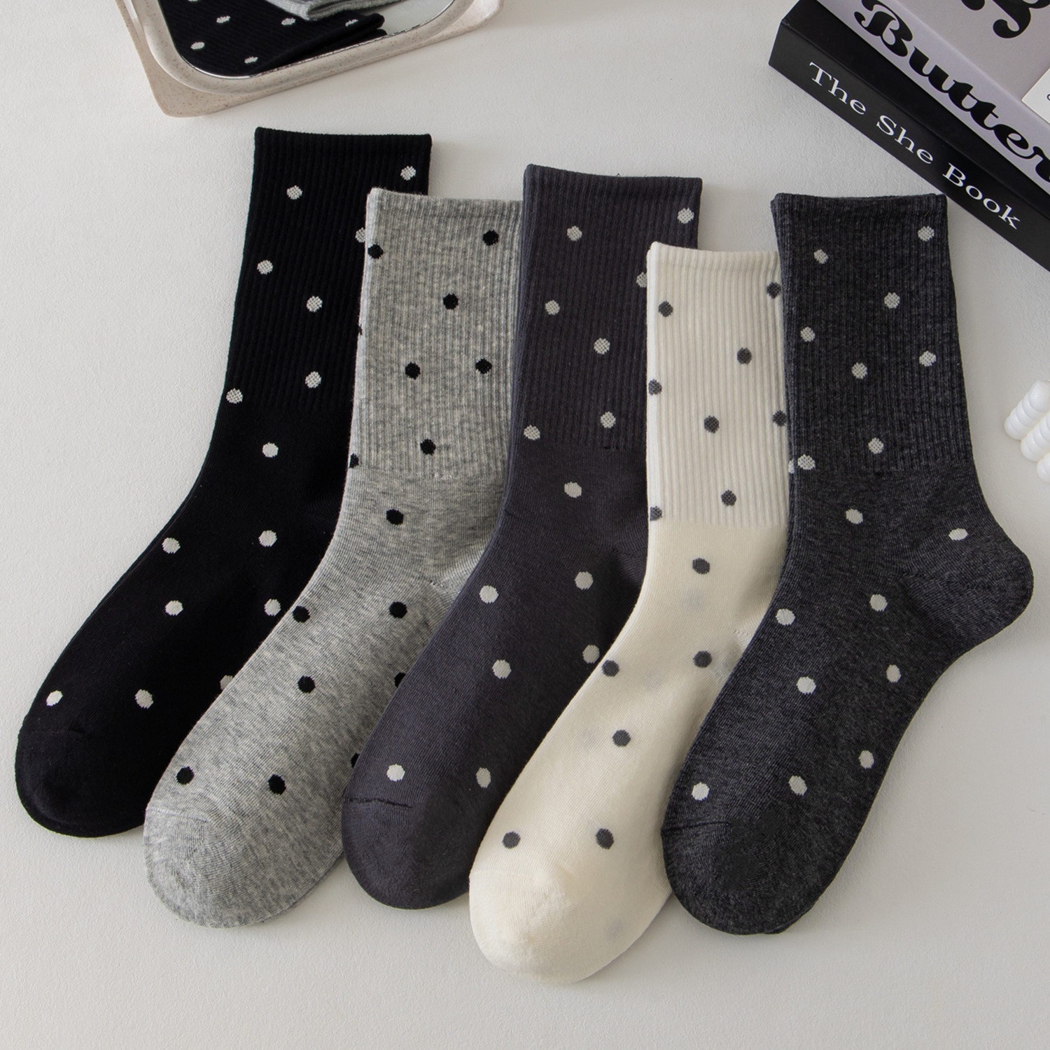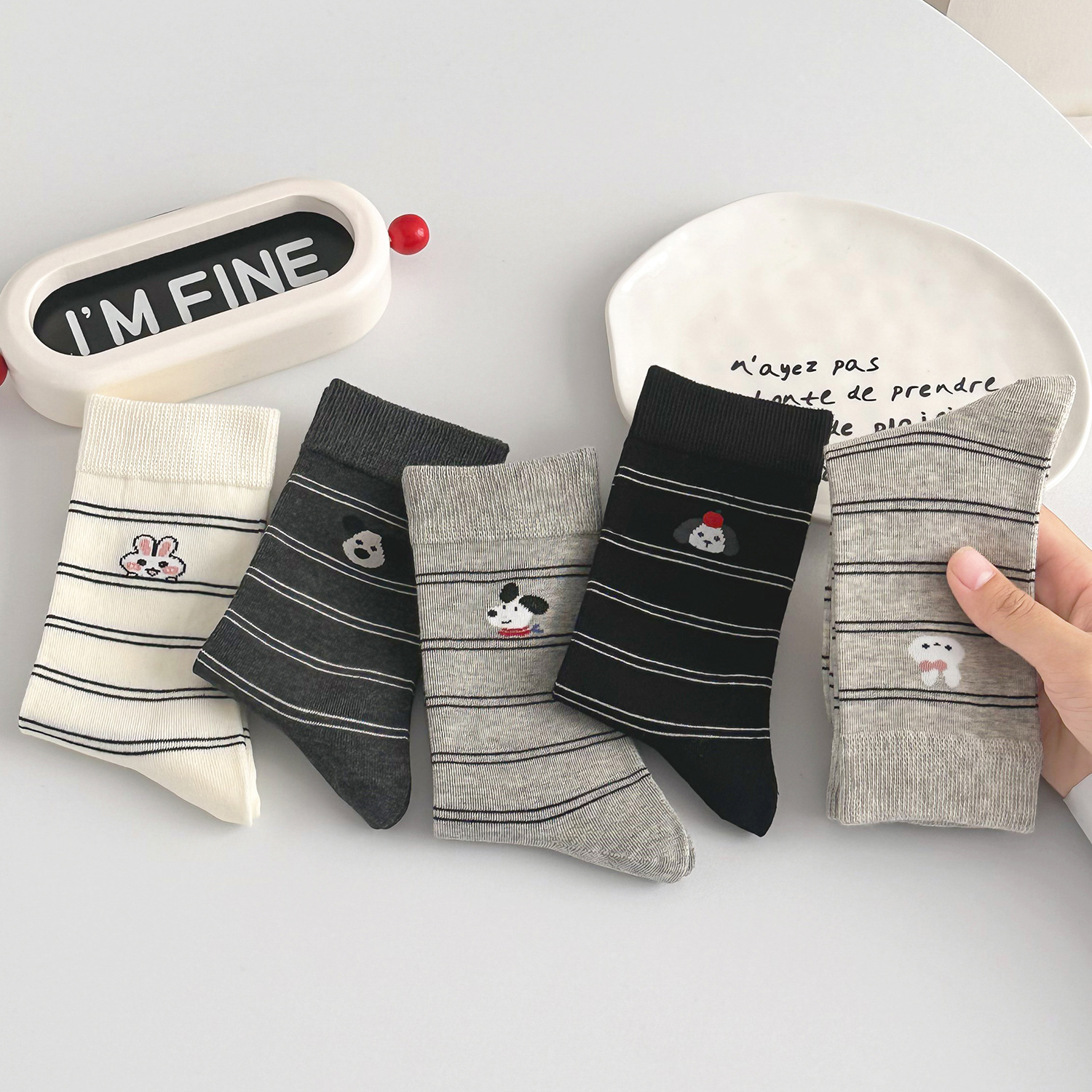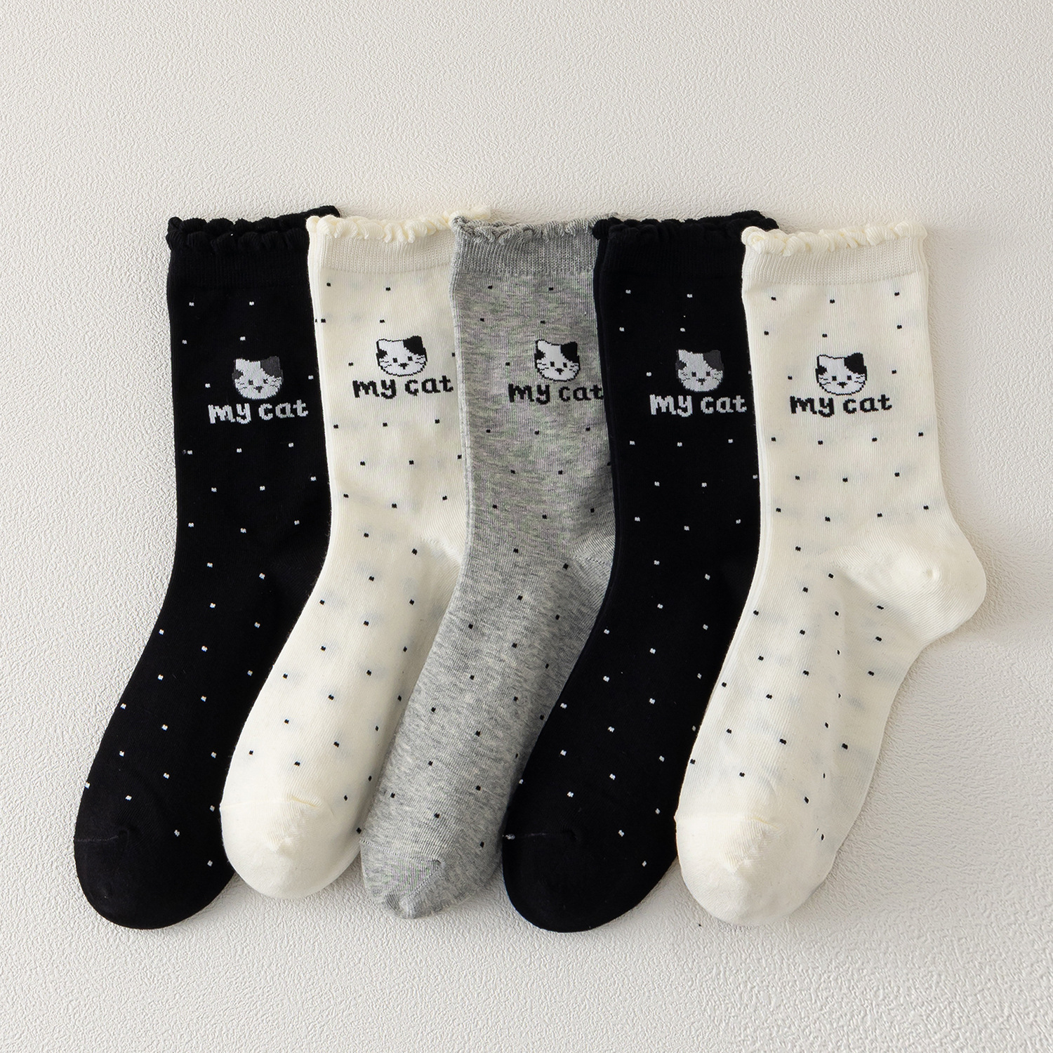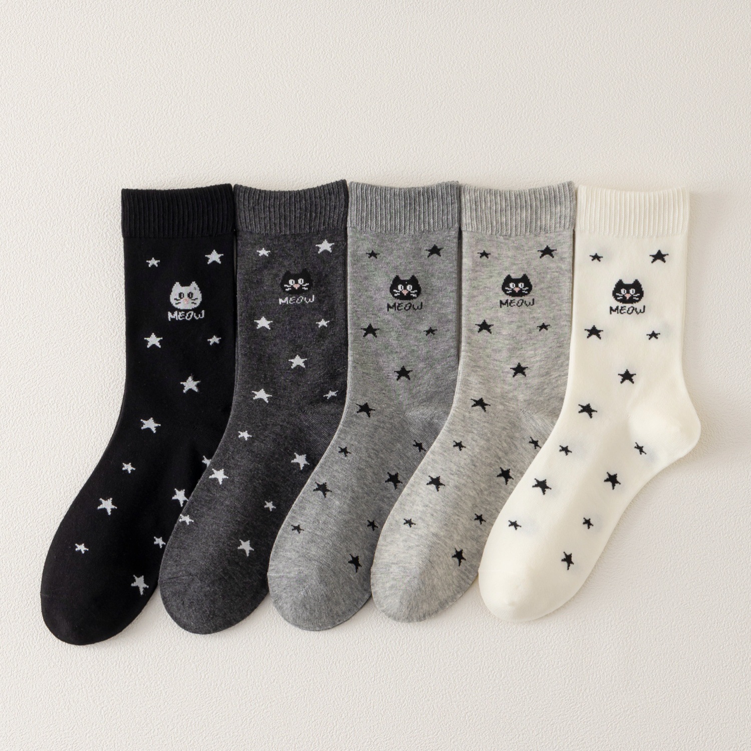 국내 트렌드 창의적이고 재미있는 레트로 스타일 인스타 감성 중간 길이 면 양말 하이삭스 트렌디 양말 도매 여성용 인스타 스타일스토어 가기