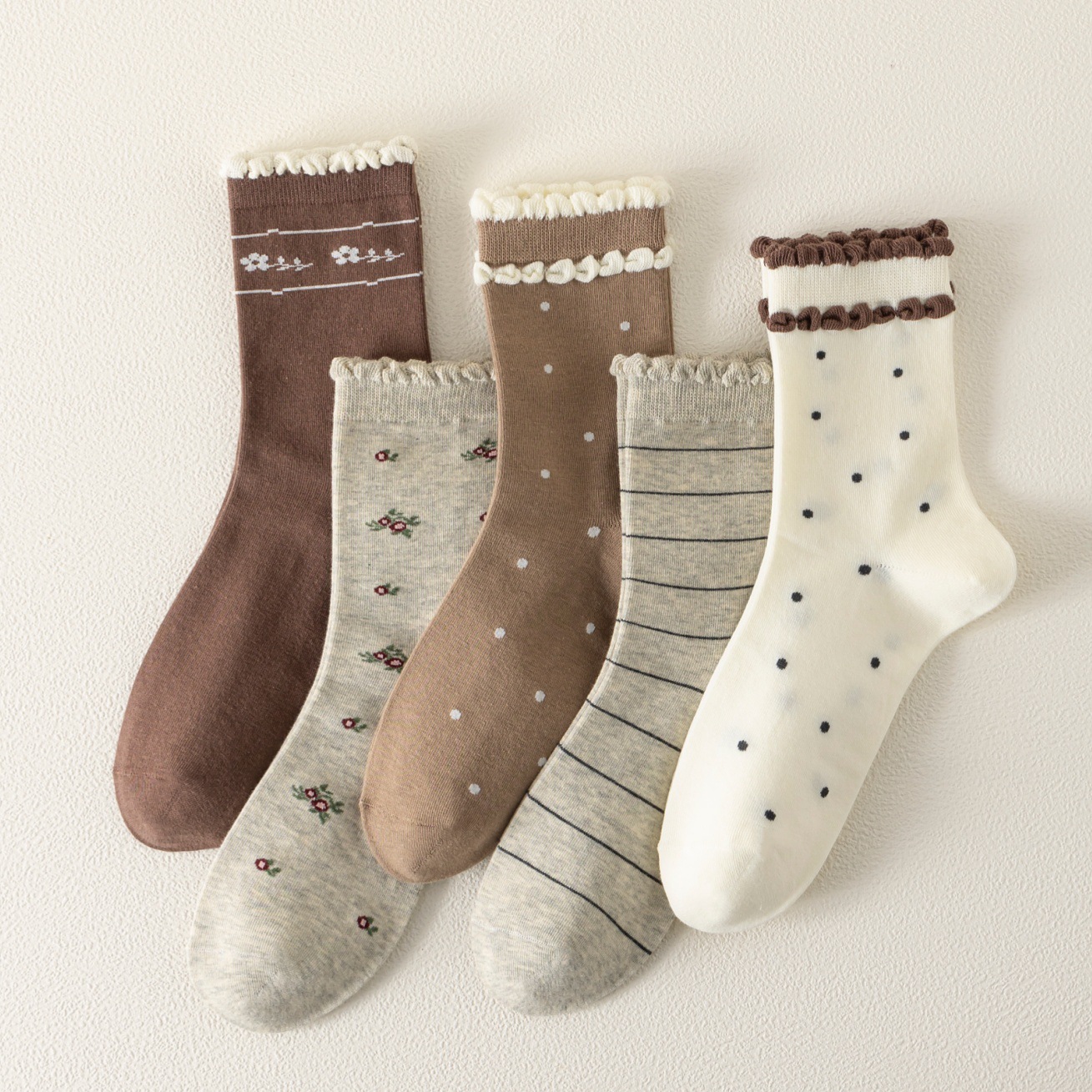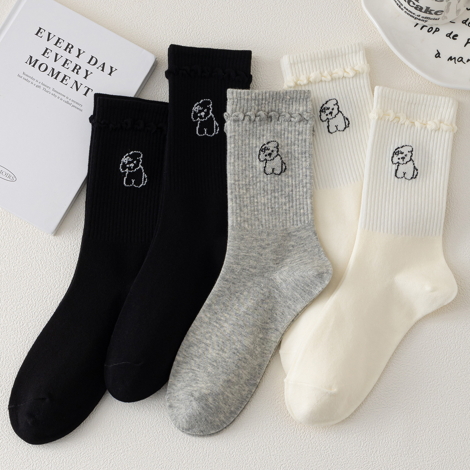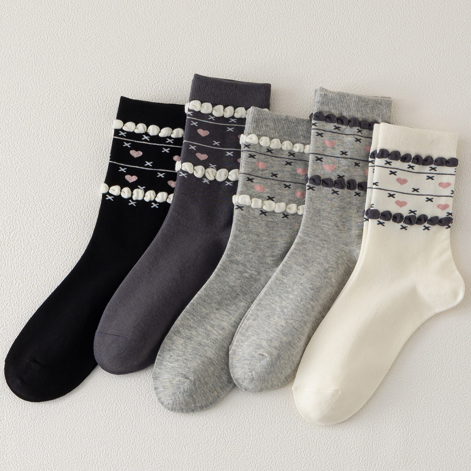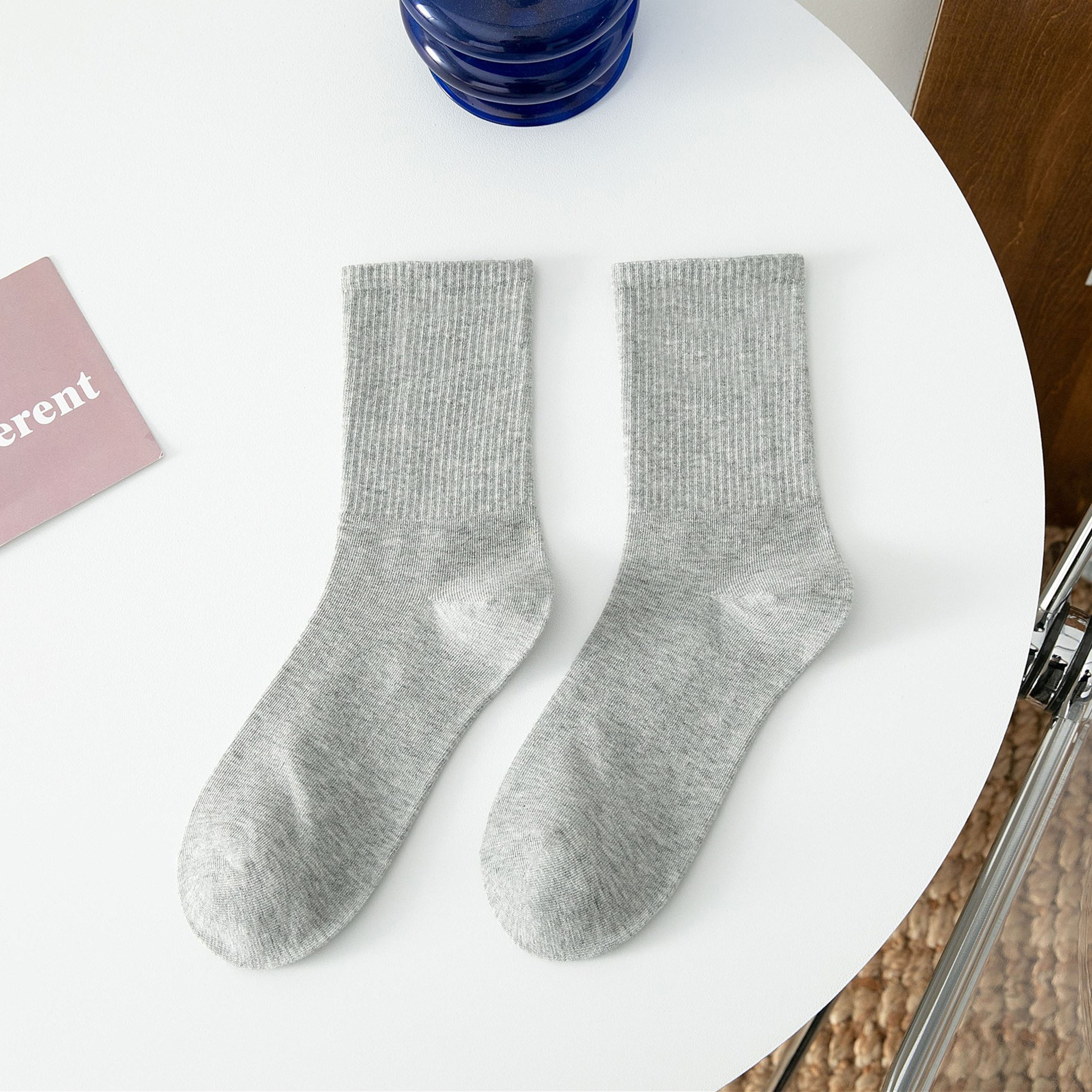 국내 트렌드 창의적이고 재미있는 레트로 스타일 인스타 감성 중간 길이 면 양말 하이삭스 트렌디 양말 도매 여성용 인스타 스타일스토어 가기