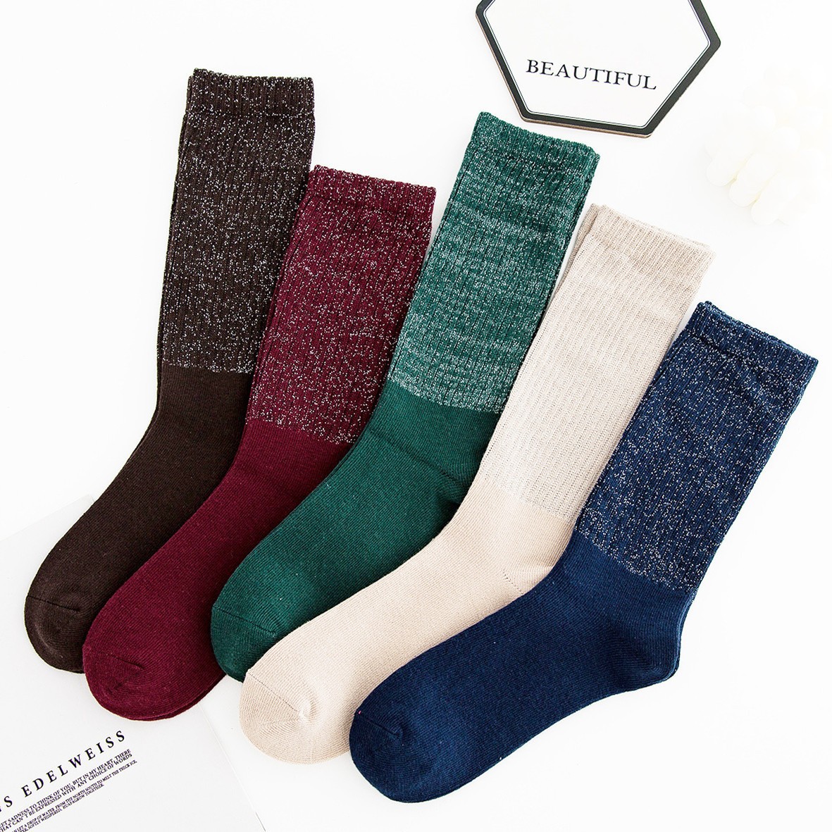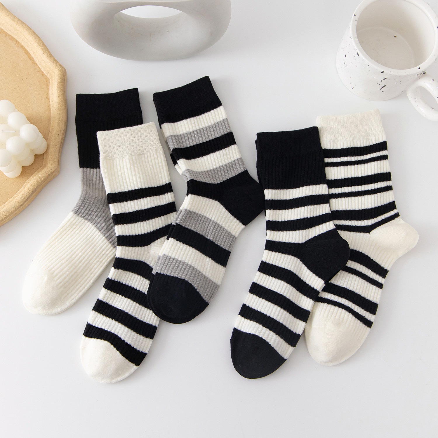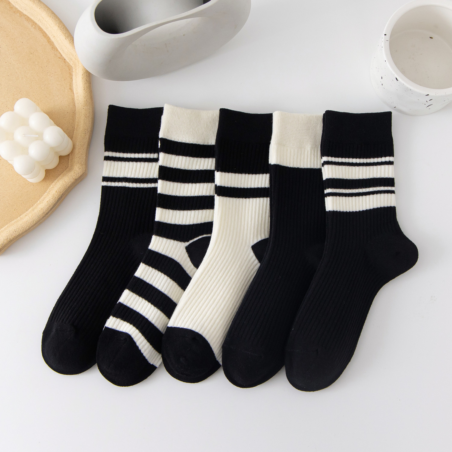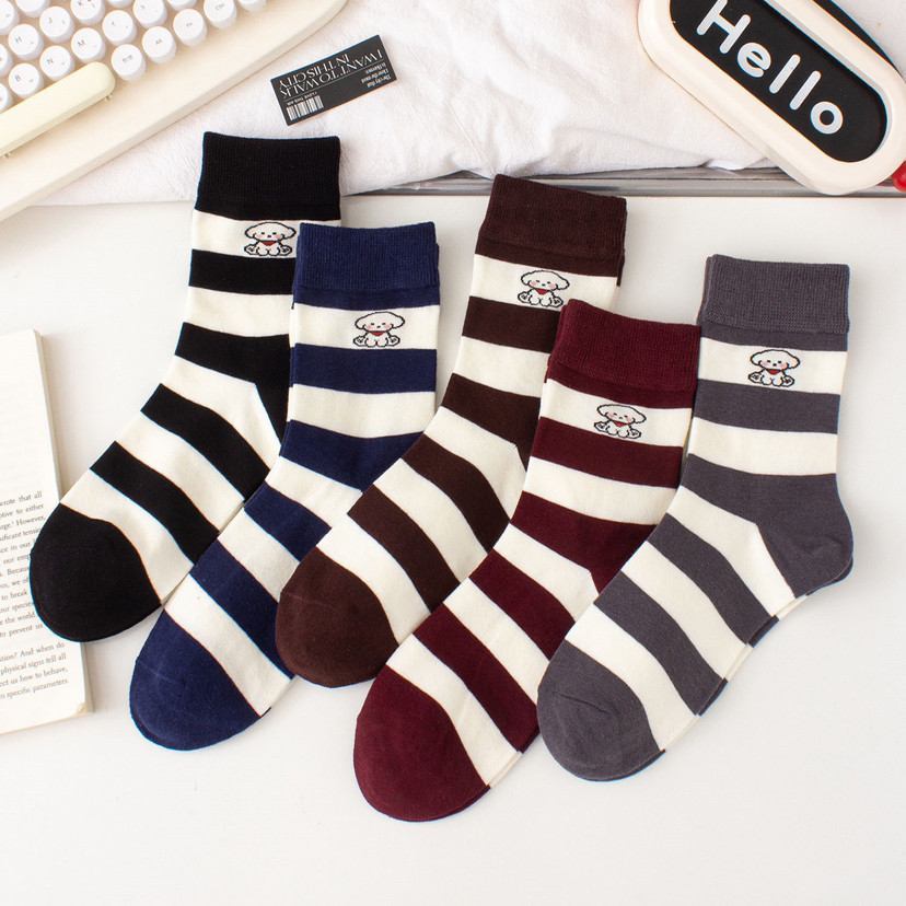 국내 트렌드 창의적이고 재미있는 레트로 스타일 인스타 감성 중간 길이 면 양말 하이삭스 트렌디 양말 도매 여성용 인스타 스타일