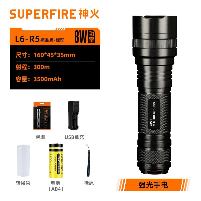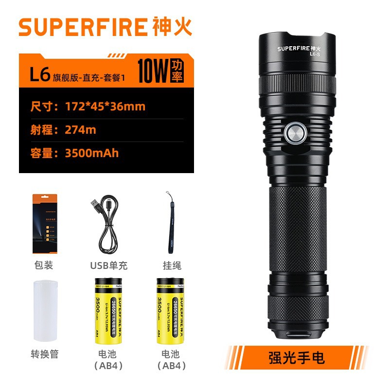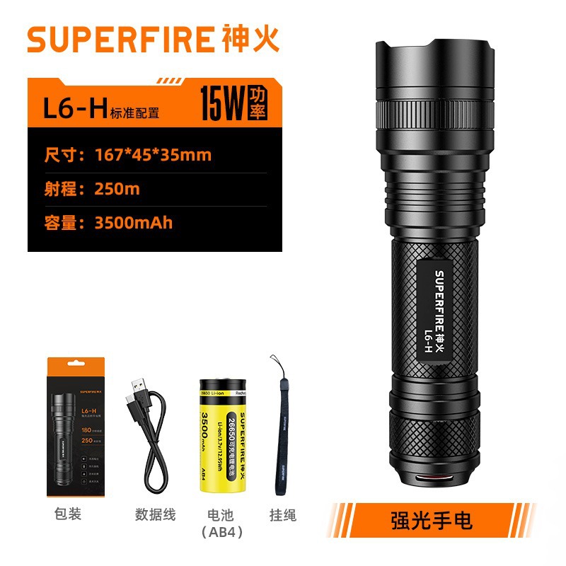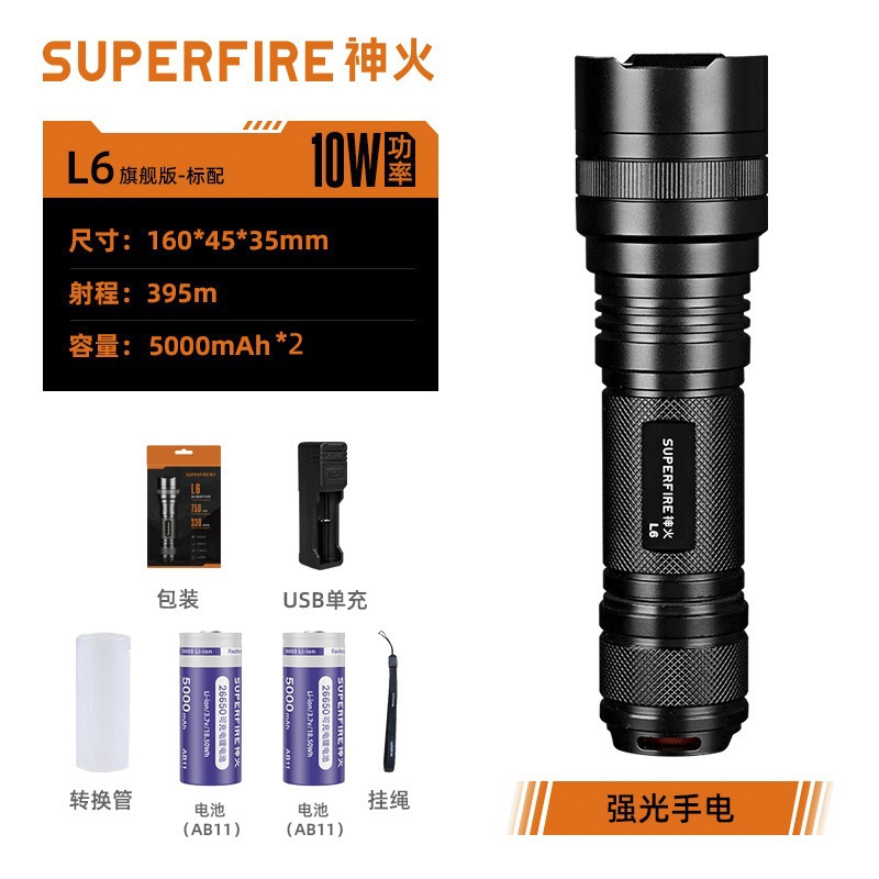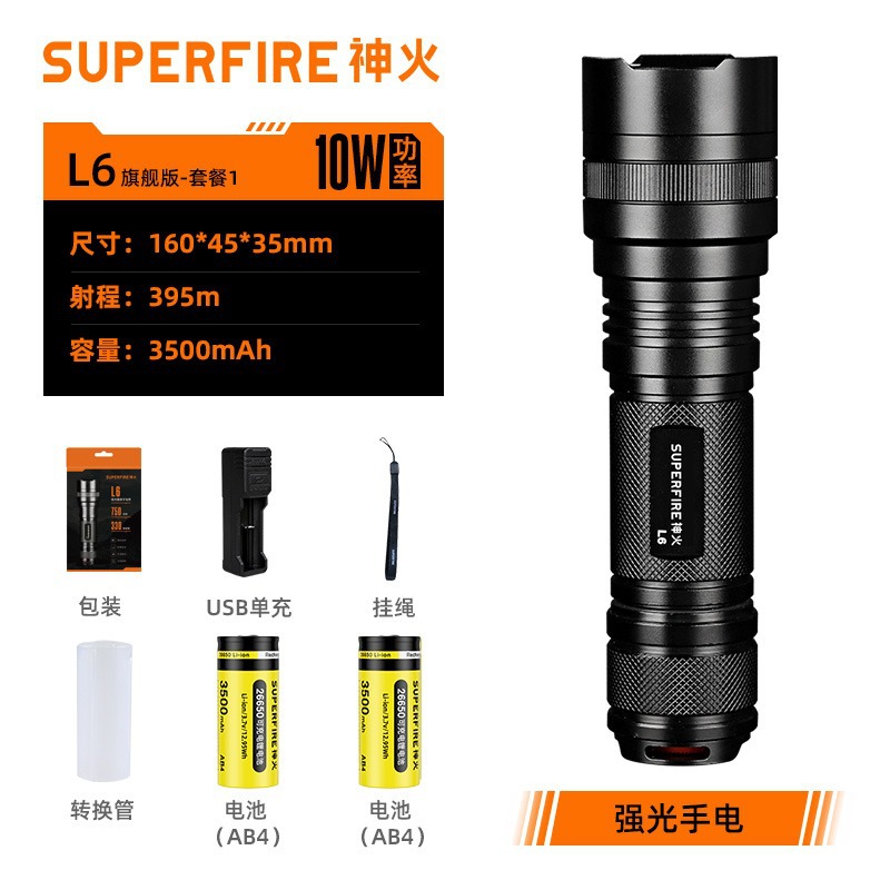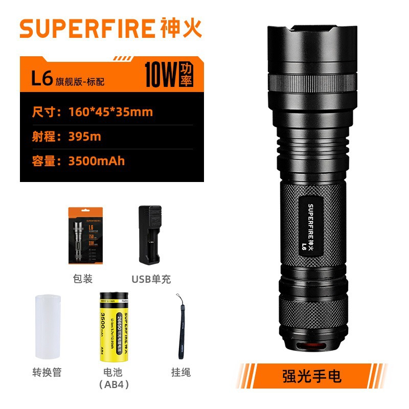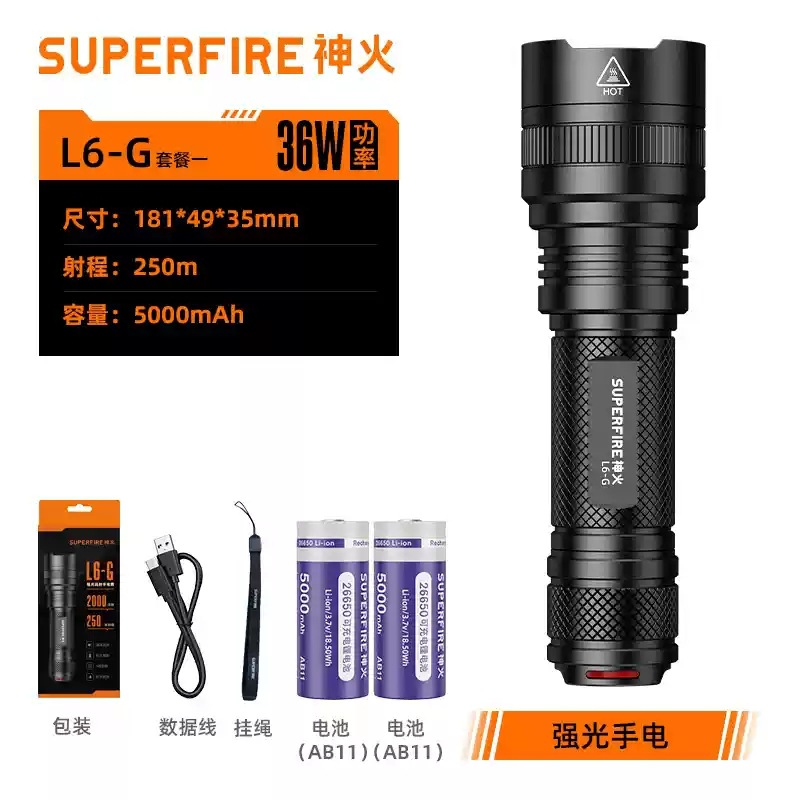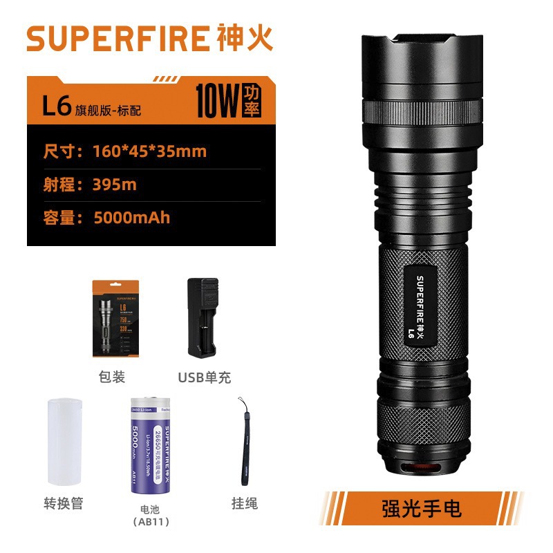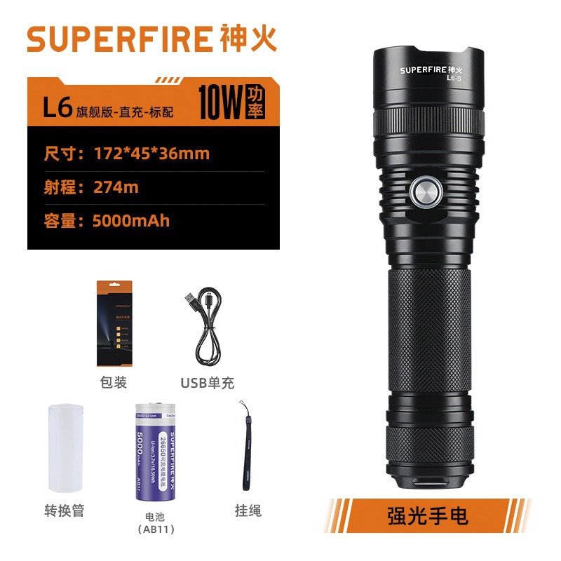 SuppFire Shenhuo L6 손전등 야외 승마 자기 방어 26650 장거리 충전 다기능 LED 조명