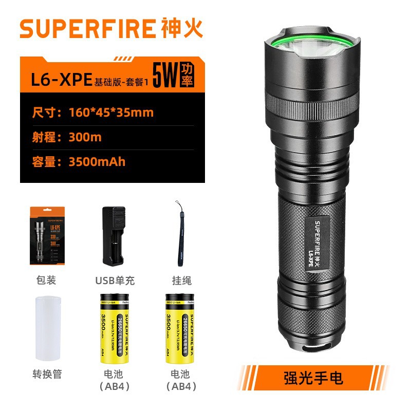 • 1 개의 배터리로 L6-XPE(5W). 충전기. Lanyard)