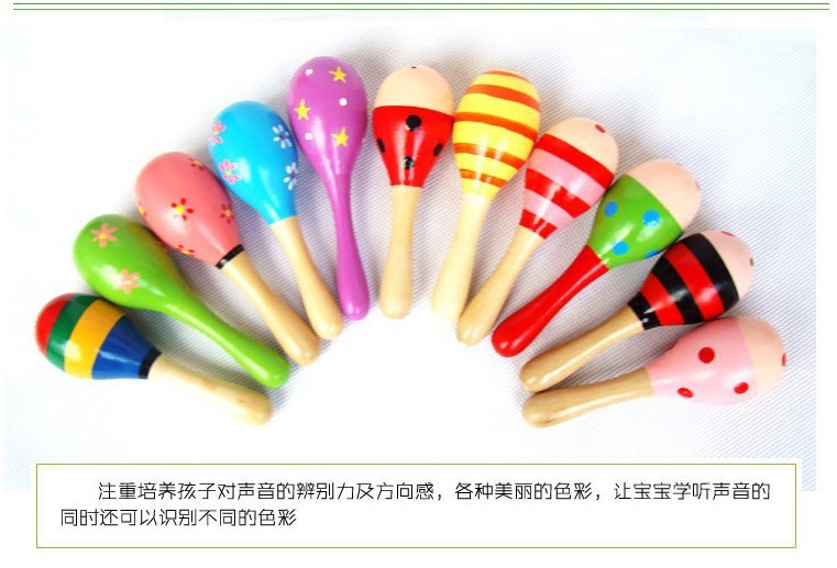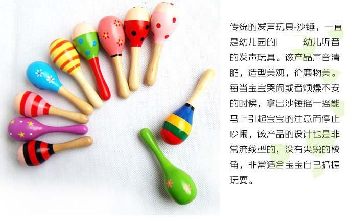 宝贝名称】:小沙锤 练习抓握 敲打木制摇铃 卡通沙球 婴儿益智玩具