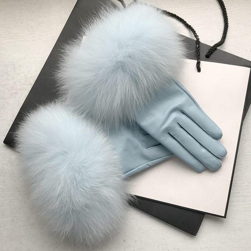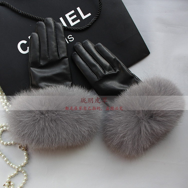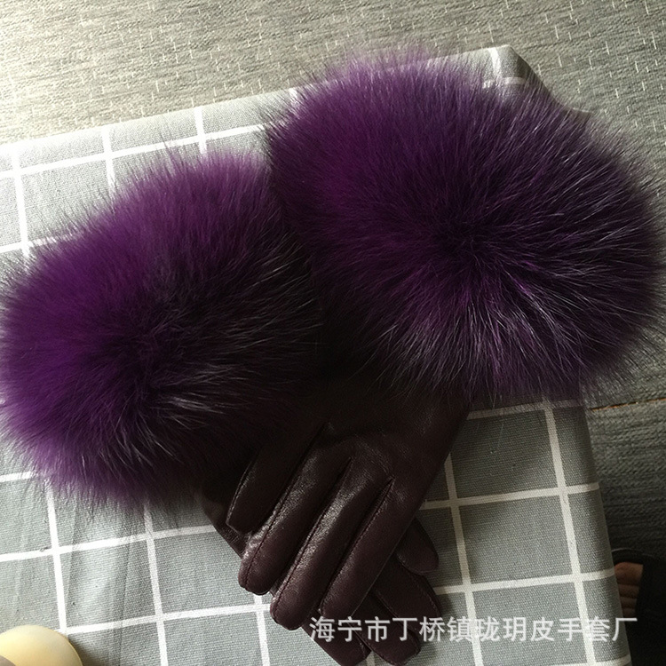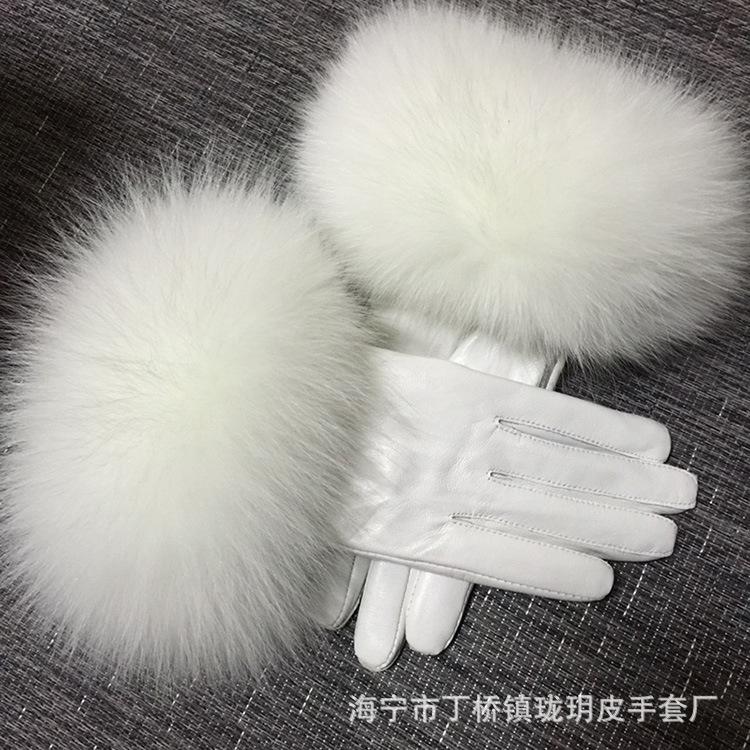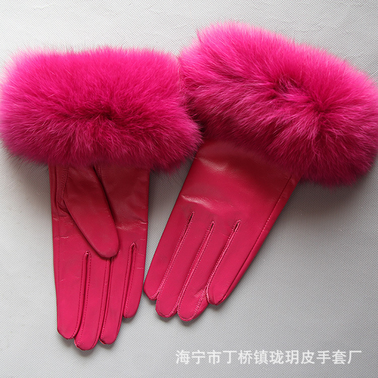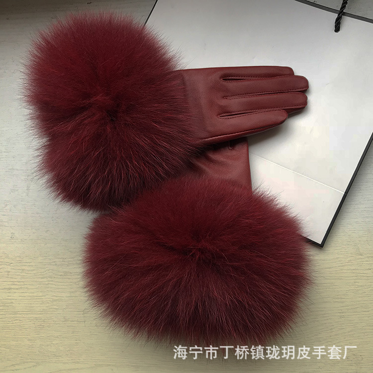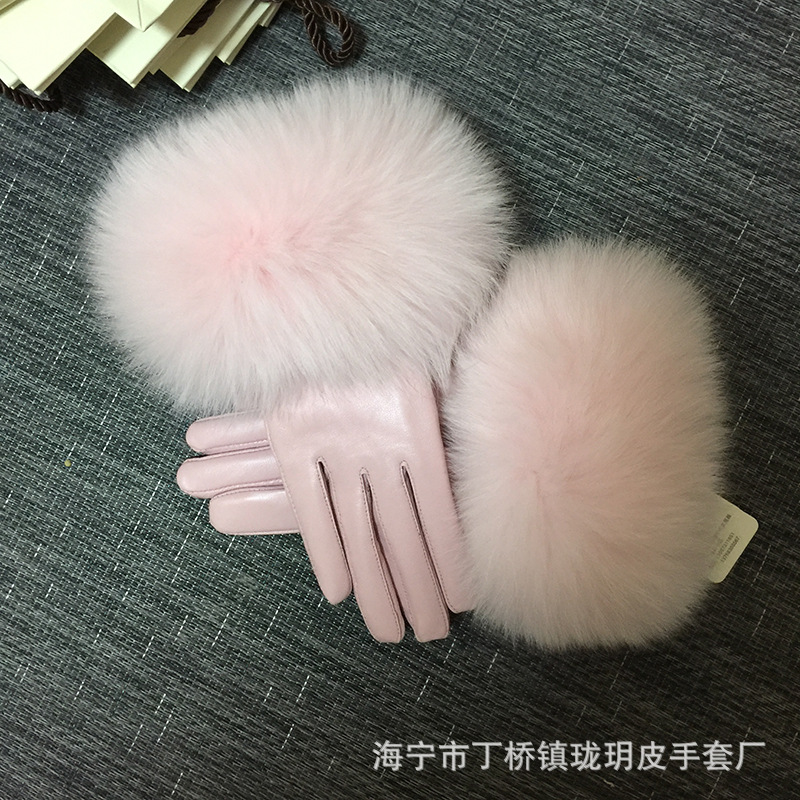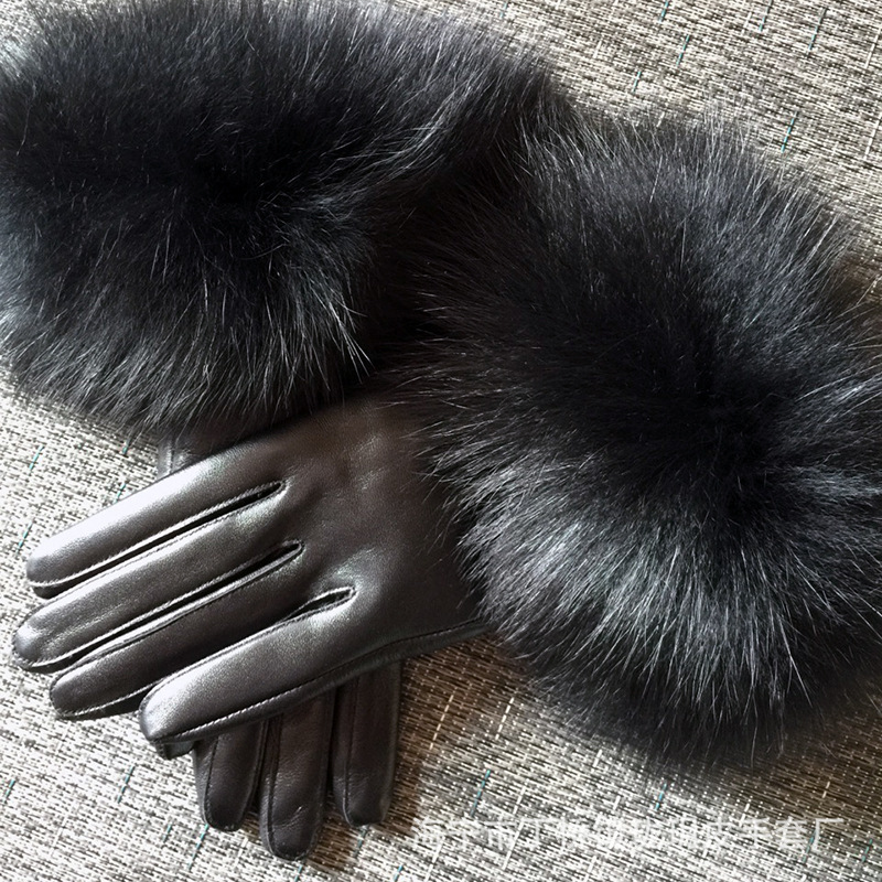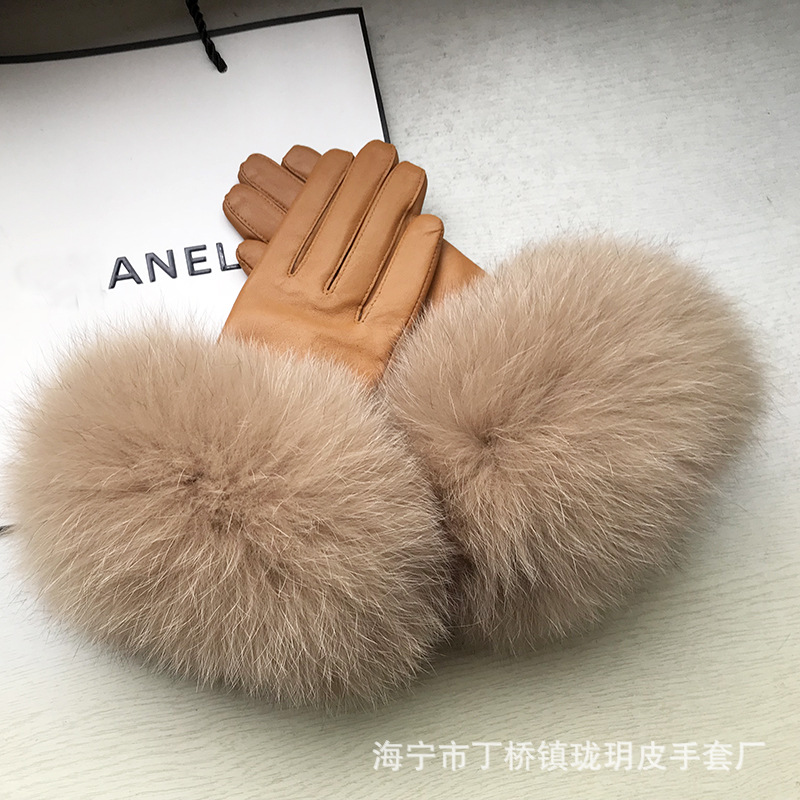 Haining 가죽 도시 가죽 장갑 여성용 겨울 따뜻한 여우 모피 입 장갑 커프 고급 브랜드 가죽 장갑