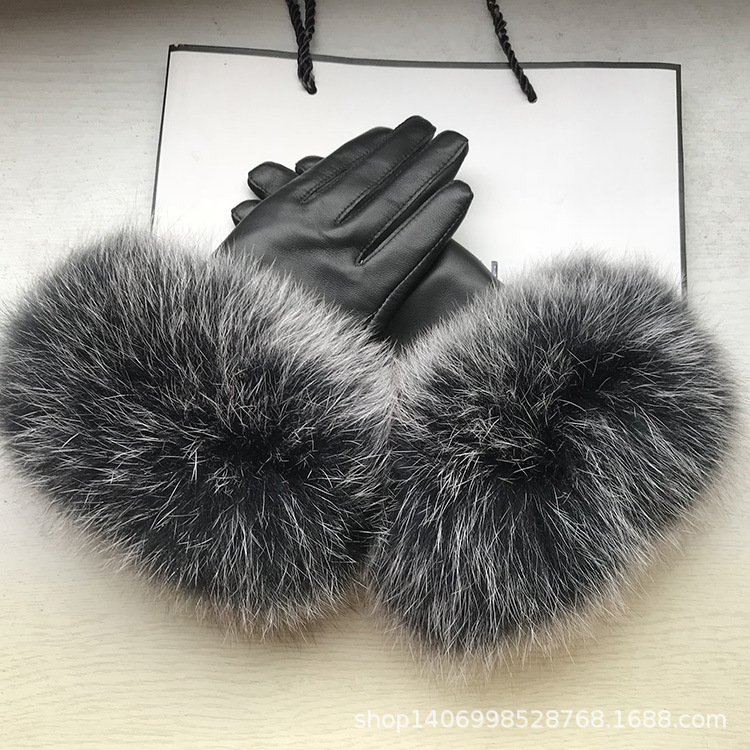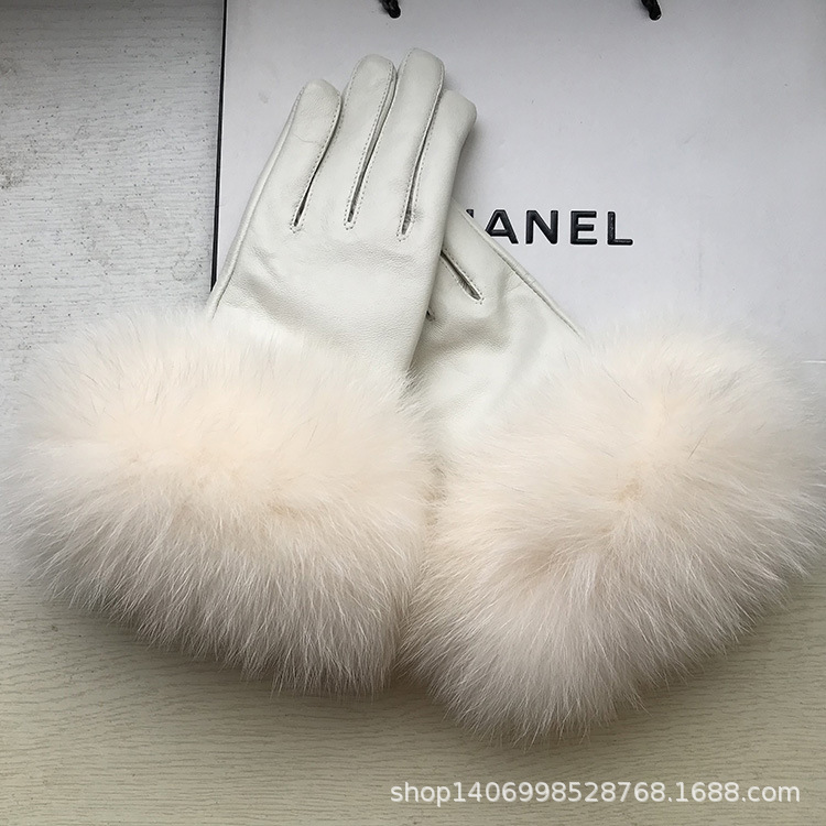 Haining 가죽 도시 가죽 장갑 여성용 겨울 따뜻한 여우 모피 입 장갑 커프 고급 브랜드 가죽 장갑스토어 가기