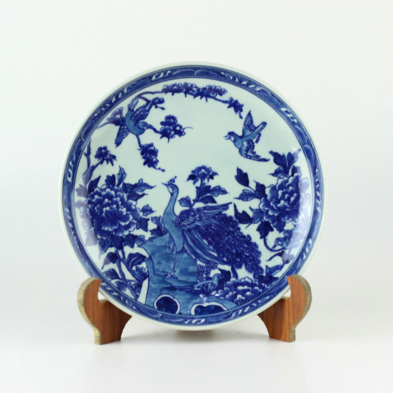 Jingdezhen 세라믹 손으로 그린 파란색과 흰색 접시 도자기 접시 용과 피닉스 꽃과 새 감사 판 교수형 플레이트 홈 장식 선물 컬렉션스토어 가기