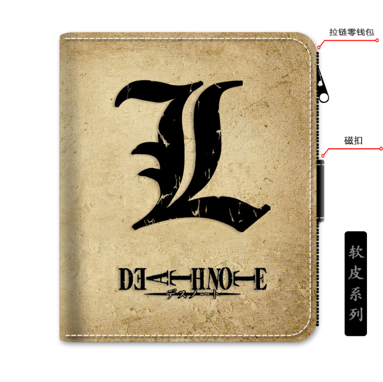 컬렉션 * 죽은 왕의 노트] 만화 주변 도매 스퀘어 라벨 블랙 지갑-머리에 대한 죽은 왕의 죽은 노트 L 라벨
