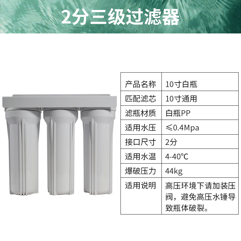 두꺼운 3단계 완전투명 10inch 3단계 정수기 수돗물 필터 트리플 프리필터