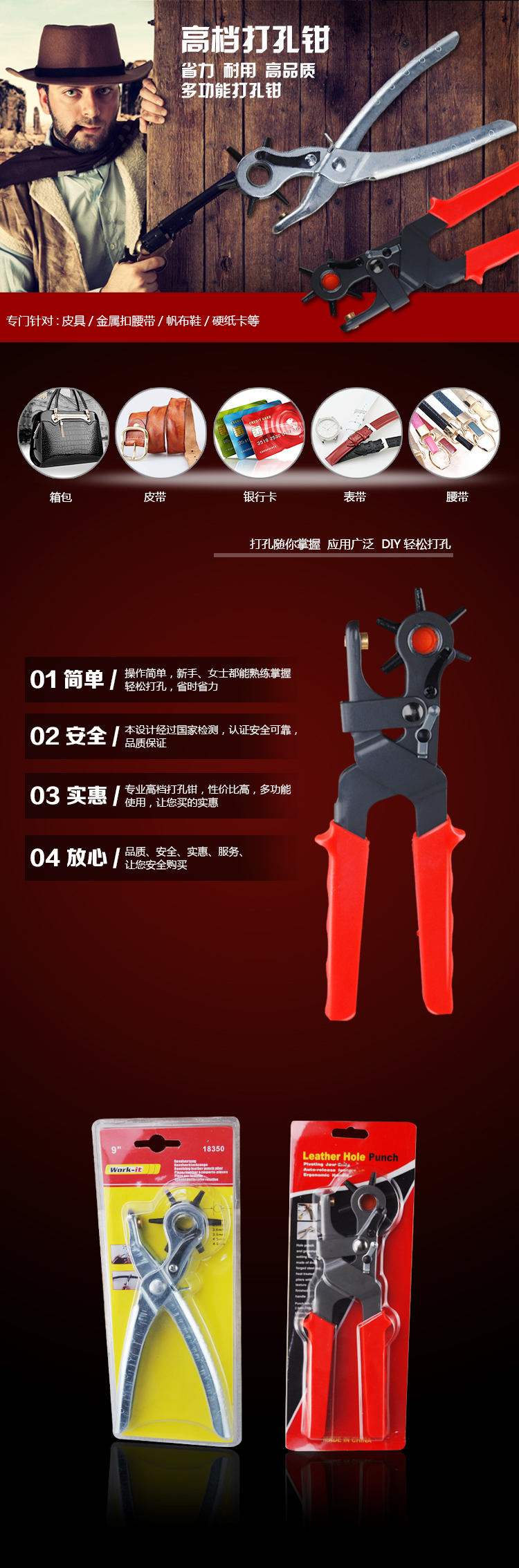 适合打圆形孔:皮带、厚纸张、皮鞋、皮革等