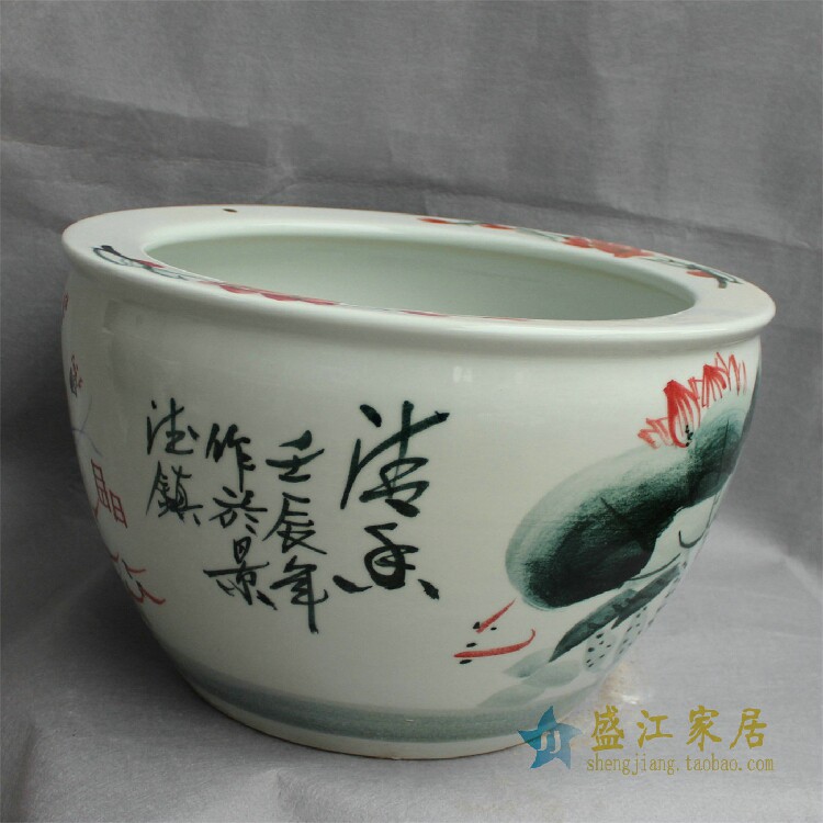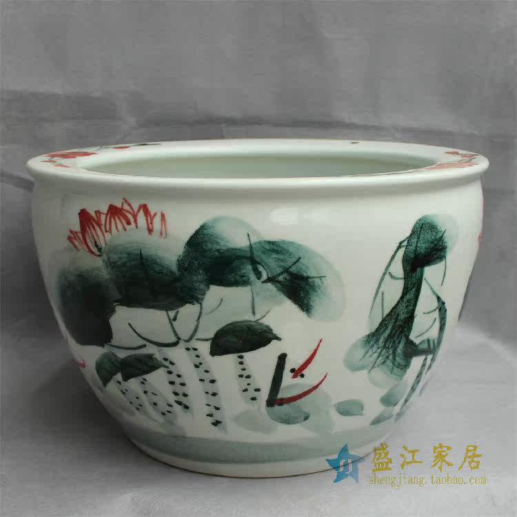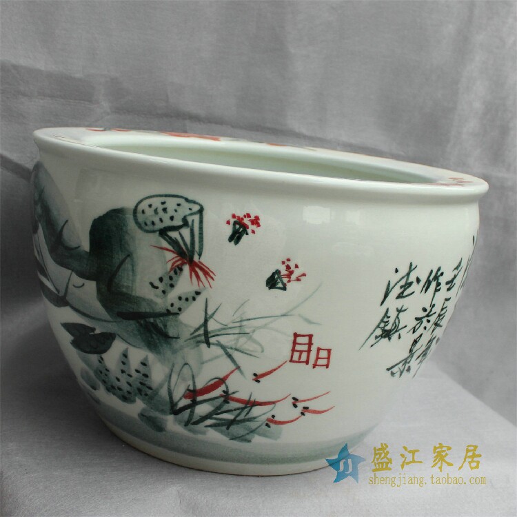 Jingdezhen 세라믹 도자기 플랫 입 어항 물 탱크 대형 탱크 꽃 냄비 수경 다중 패턴 탱크스토어 가기