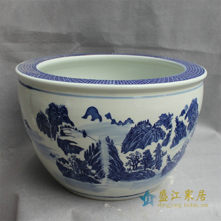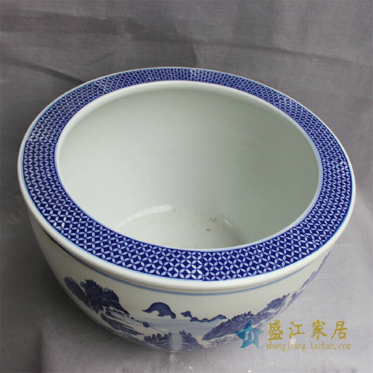 Jingdezhen 세라믹 도자기 플랫 입 어항 물 탱크 대형 탱크 꽃 냄비 수경 다중 패턴 탱크