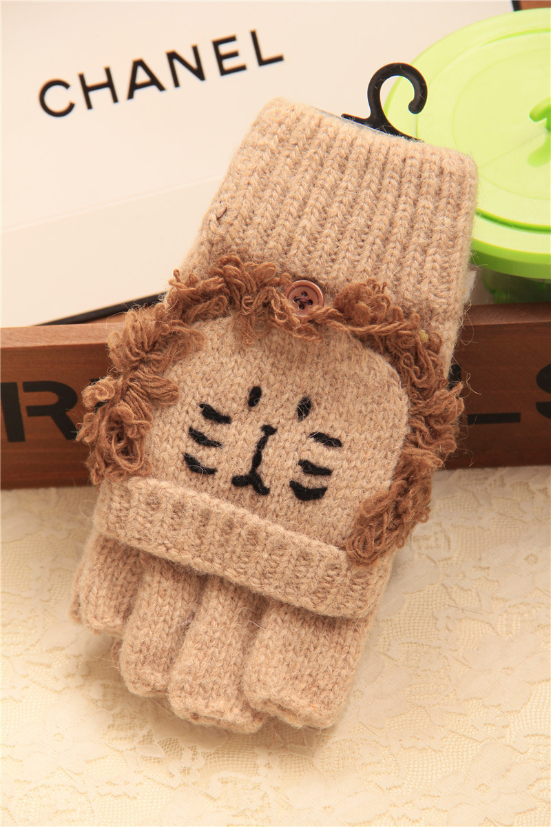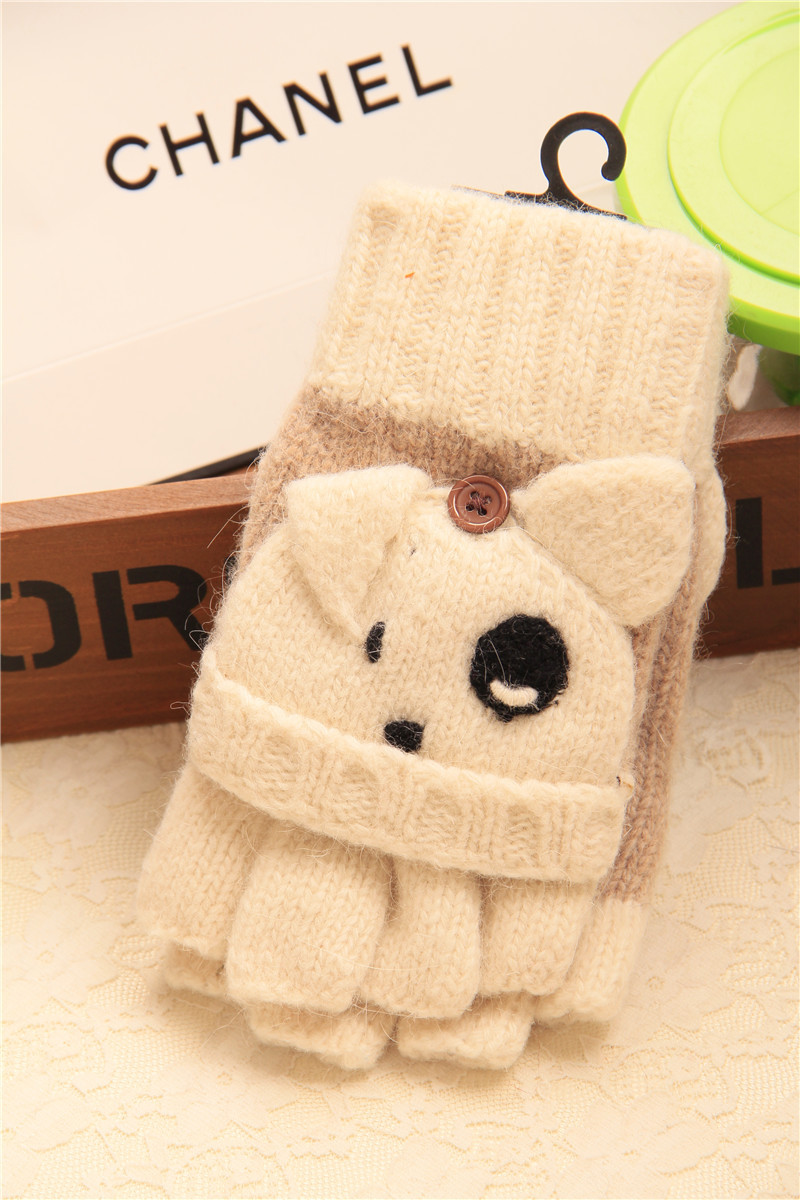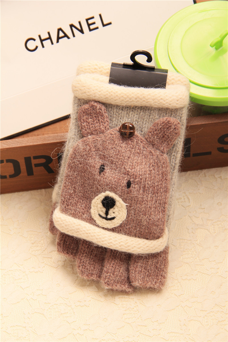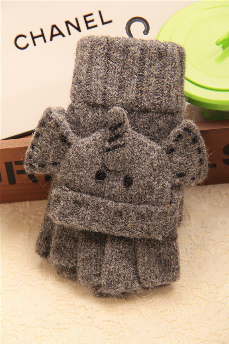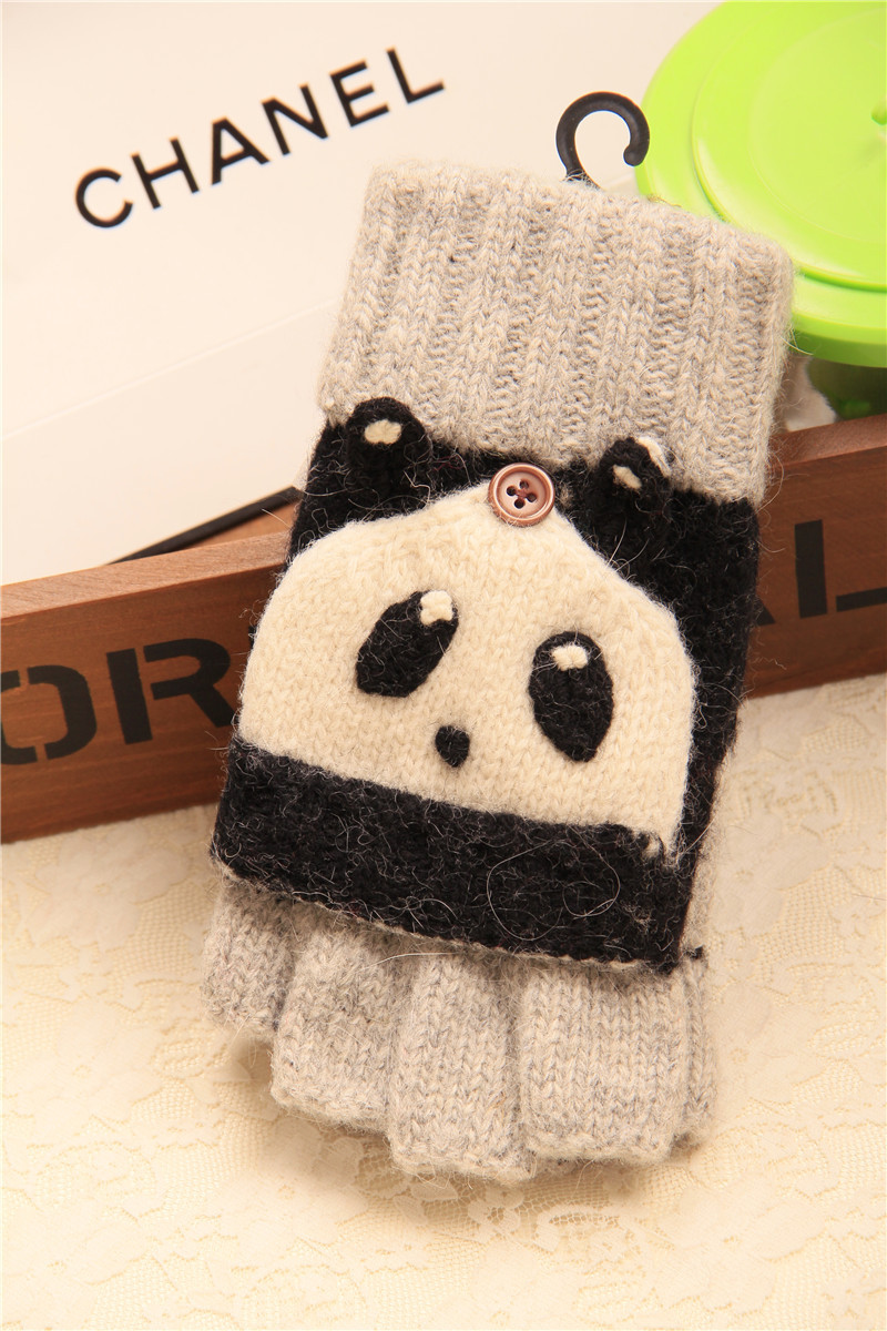 슈퍼 귀여운! 귀여운 곰 및 팬더 입체 만화 장갑 순수 울 이중 사용 반 손가락 장갑 플립 장갑 수출스토어 가기