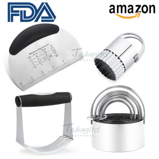 亚马逊热销组套 不锈钢打粉器 饼干模套装 半圆面团切刀 烘焙套装