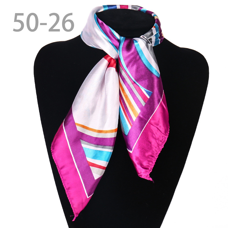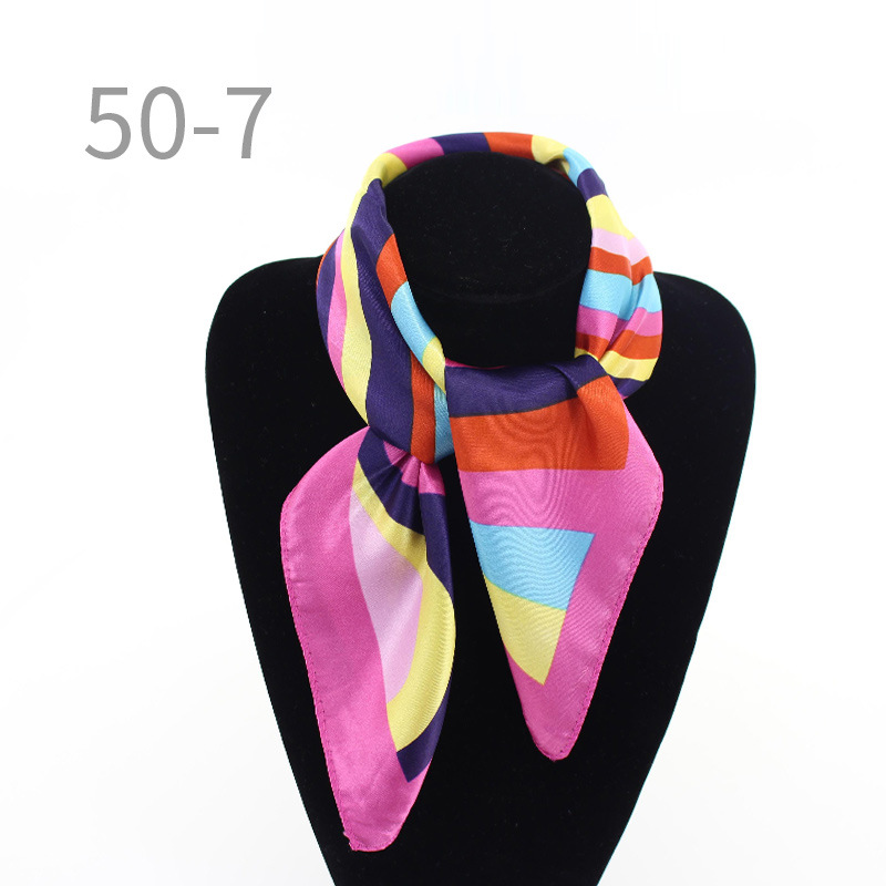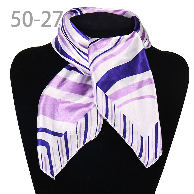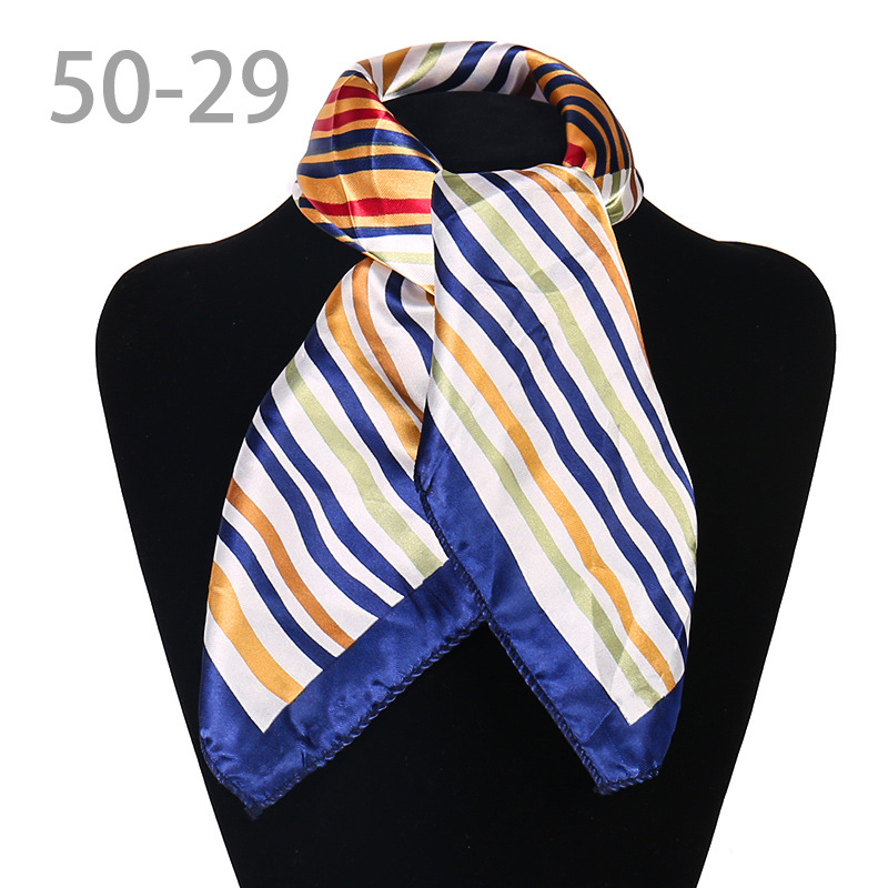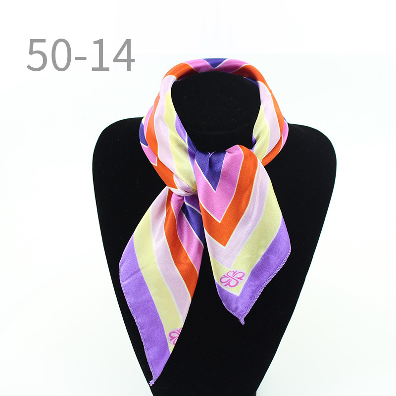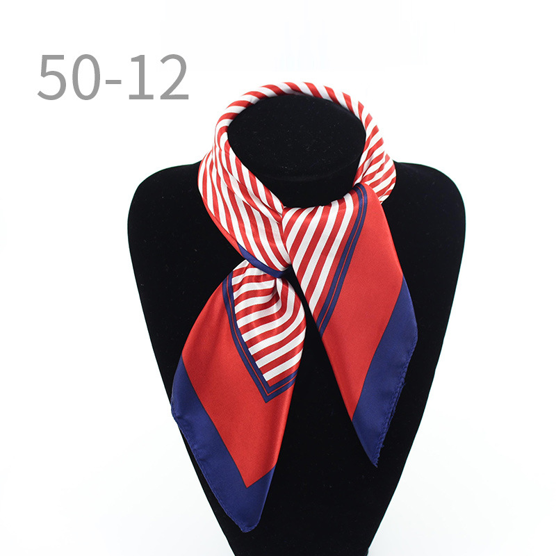 도매 직업 모바일 호텔 스튜어디스 에티켓 인쇄 작은 사각형 수건 새틴 줄무늬 장식 50 실크 스카프 스카프스토어 가기