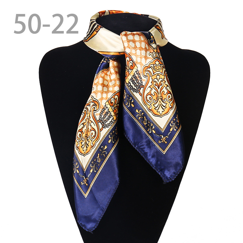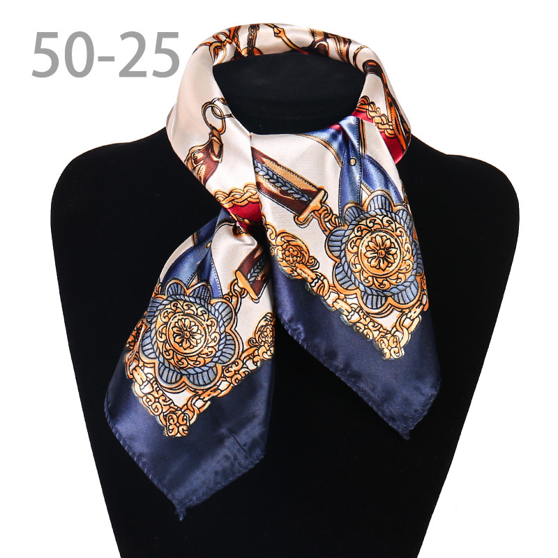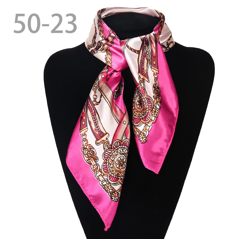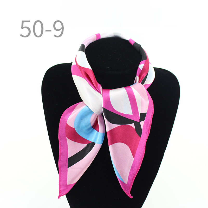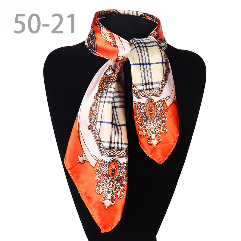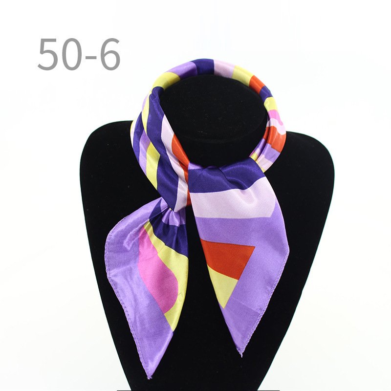도매 직업 모바일 호텔 스튜어디스 에티켓 인쇄 작은 사각형 수건 새틴 줄무늬 장식 50 실크 스카프 스카프스토어 가기