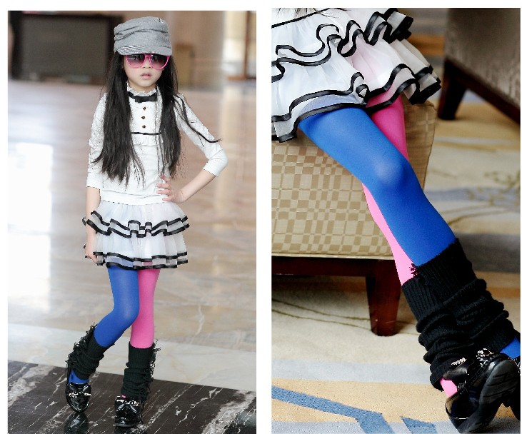 어린이 팬티 스타킹 캔디 컬러 벨벳 여아 AB 2 색 스티칭베이스 양말 좌우 컬러 스플라이싱 댄스 양말스토어 가기