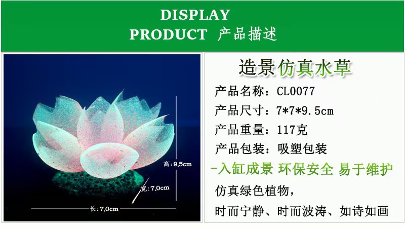 仿真海草产品尺寸:底座直径7厘米,高12厘米,