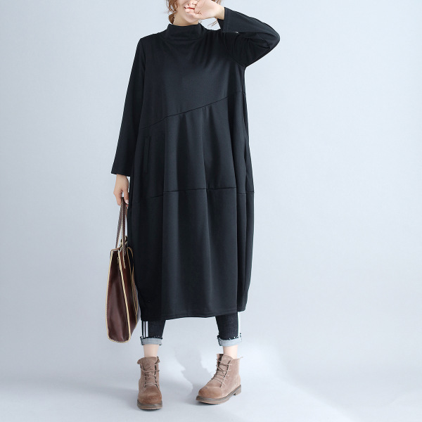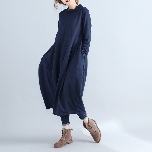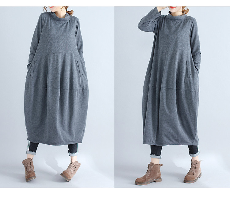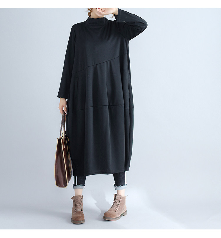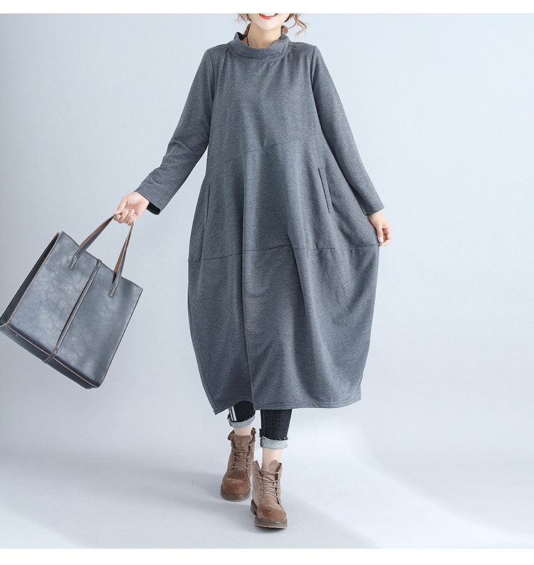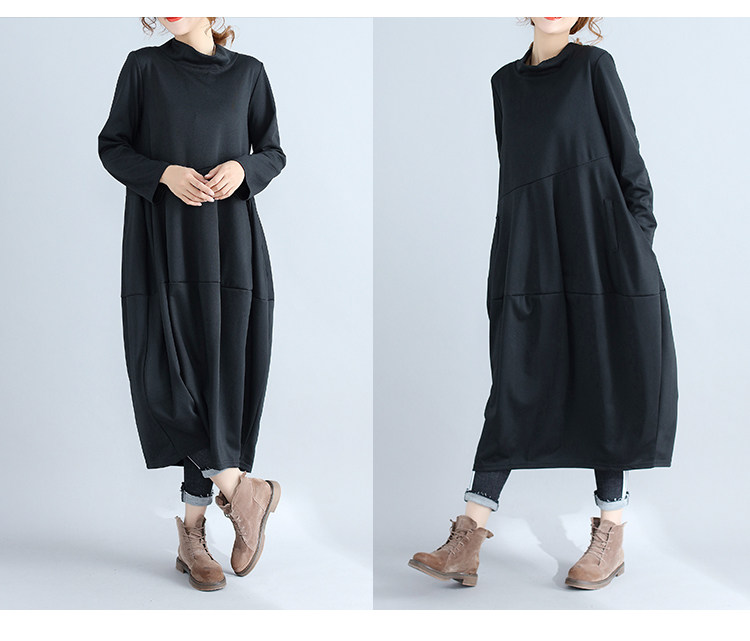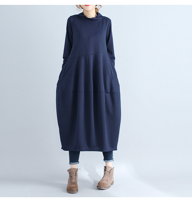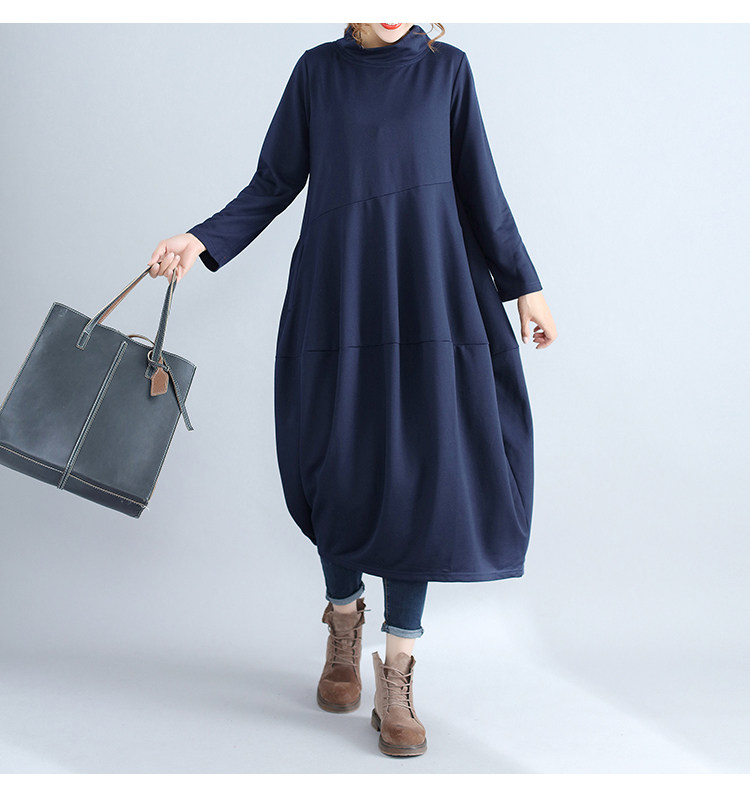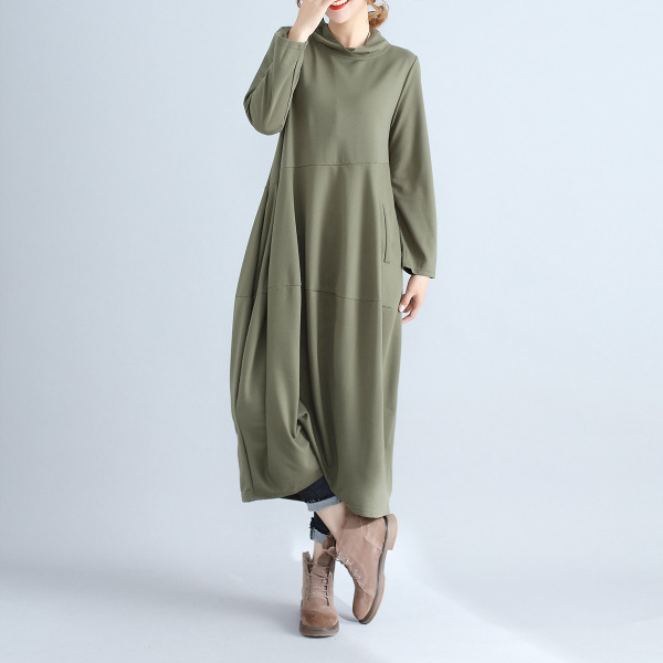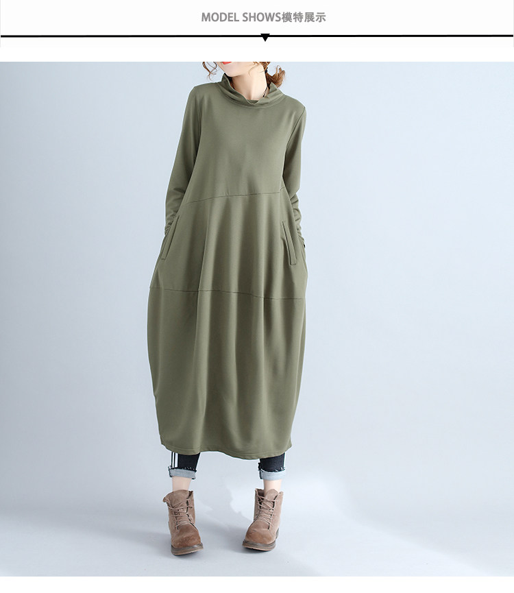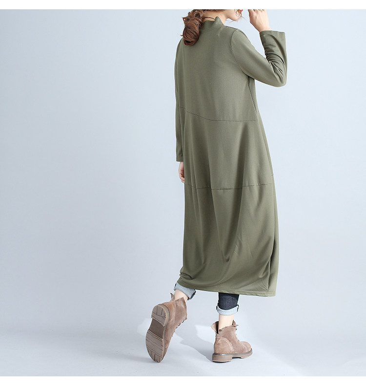 리얼 샷 2024 빈티지 단색 랜턴 스커트 세미 하이 칼라 기질은면과 린넨 스티칭 긴 소매 원피스 원피스스토어 가기