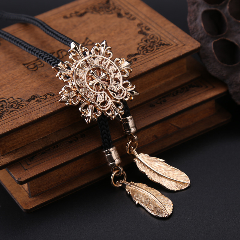 국경 간 핫 세일 트렌디 데님 볼로타이 한국식 넥타이 로프 패션 중공 눈송이 볼로 타이 제조업체 승인