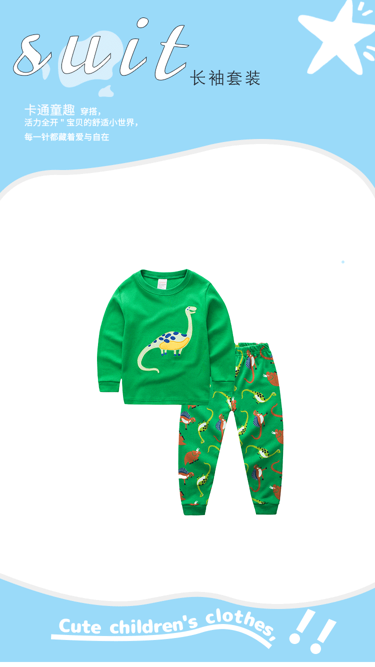 아동 의류 긴 소매 어린이 홈 의류 2-7 어린이 소년 공룡 긴 소매 어린이 세트 면화 어린이 잠옷