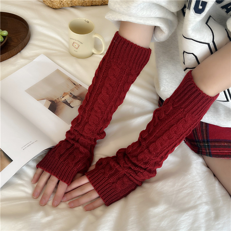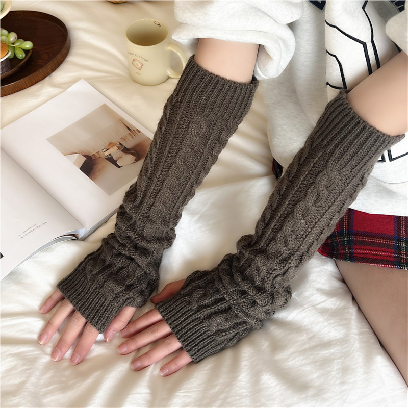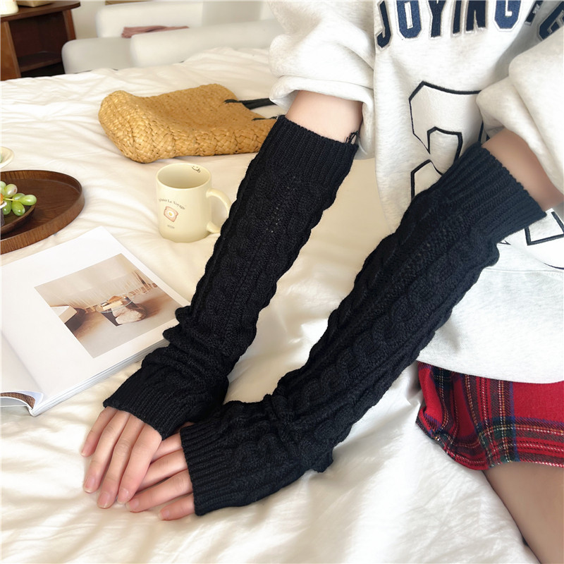 50cm 가을 겨울 야외 따뜻한 한국 스타일 여성의 귀여운 긴 트위스트 반 손가락 니트 팔 슬리브