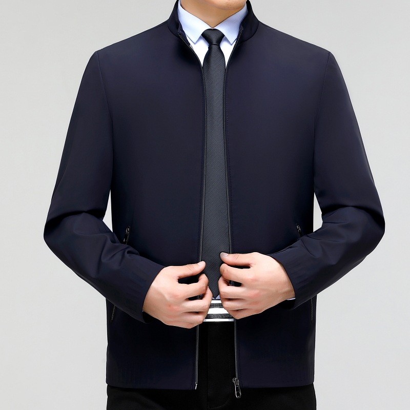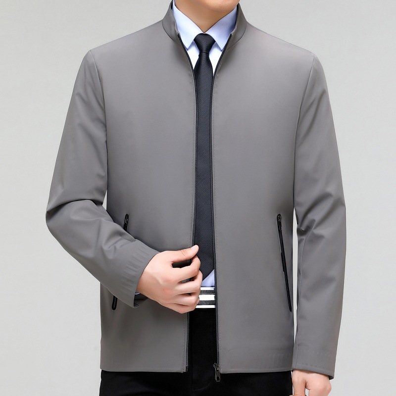 가을 신상 재킷 고급 남성복 단색 브랜드 중년 남성 코트 캐주얼 스탠드 칼라 실크 재킷 남성용