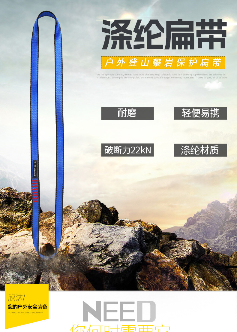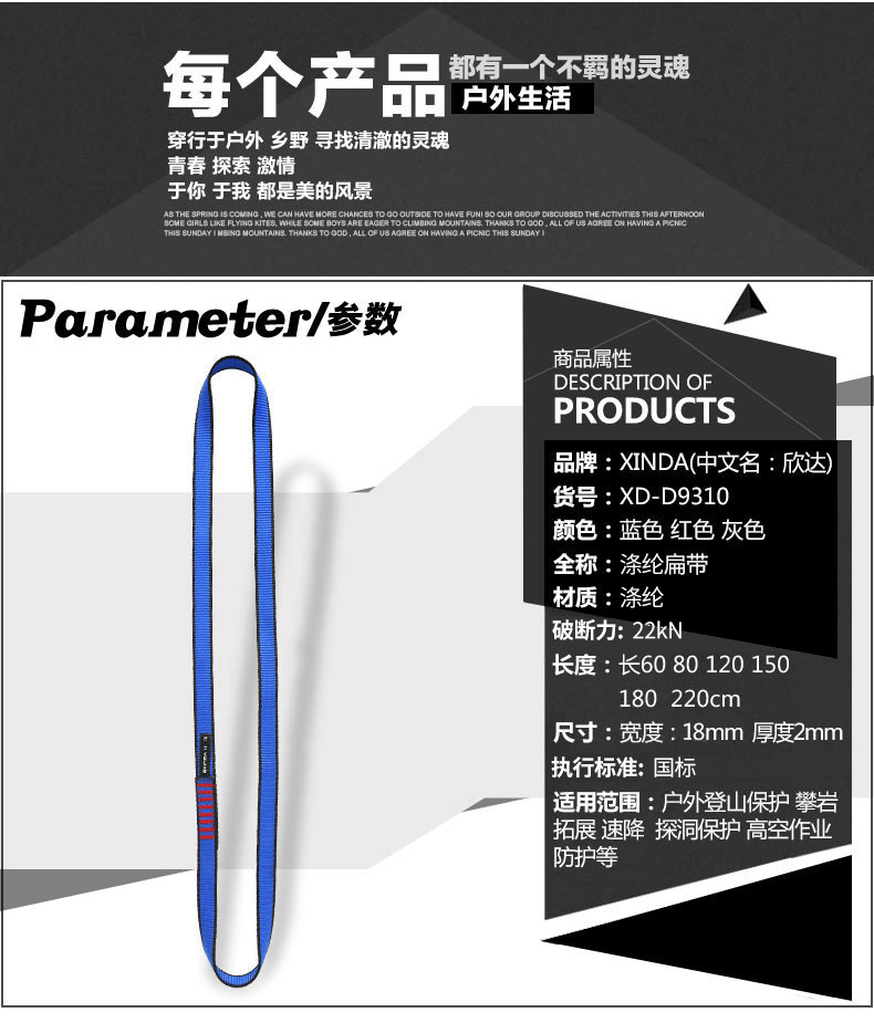 Xinda 아웃도어 플랫 벨트, 등반 플랫 벨트, 등산 및 다운힐 보호 플랫 벨트, 폴리에스테르 플랫 벨트 링, 등산 벨트 안전 장비