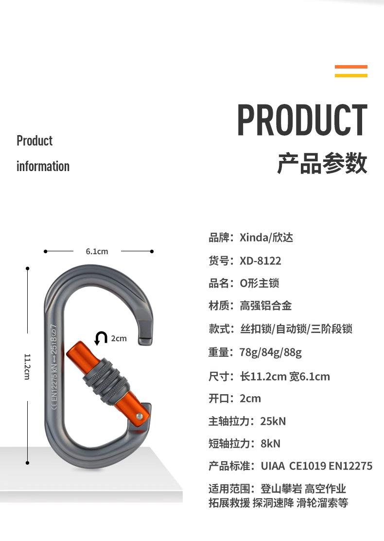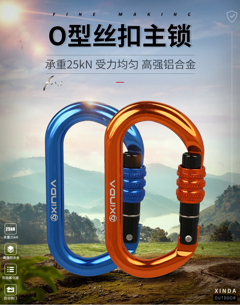 Xinda/xinda O형 나사 실 메인 잠금 야외 암벽 등반 메인 잠금 안전 메인 잠금 카라비너 빠른 교수형 잠금 장치스토어 가기