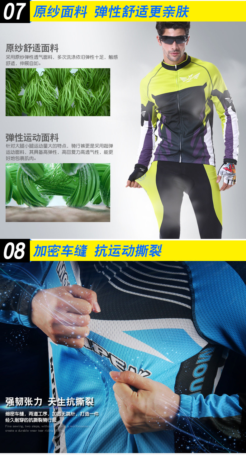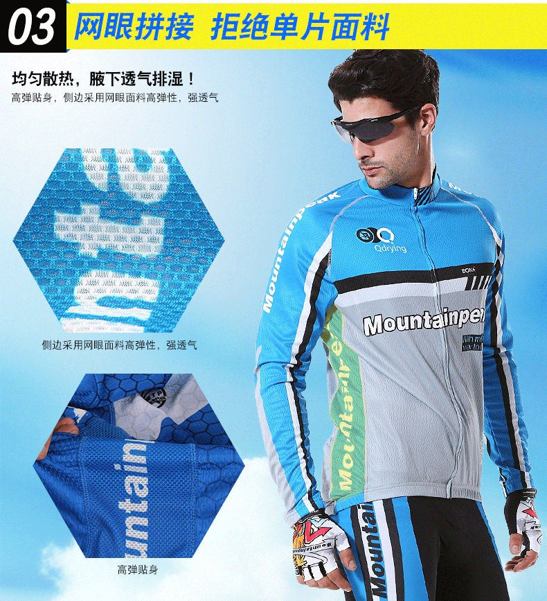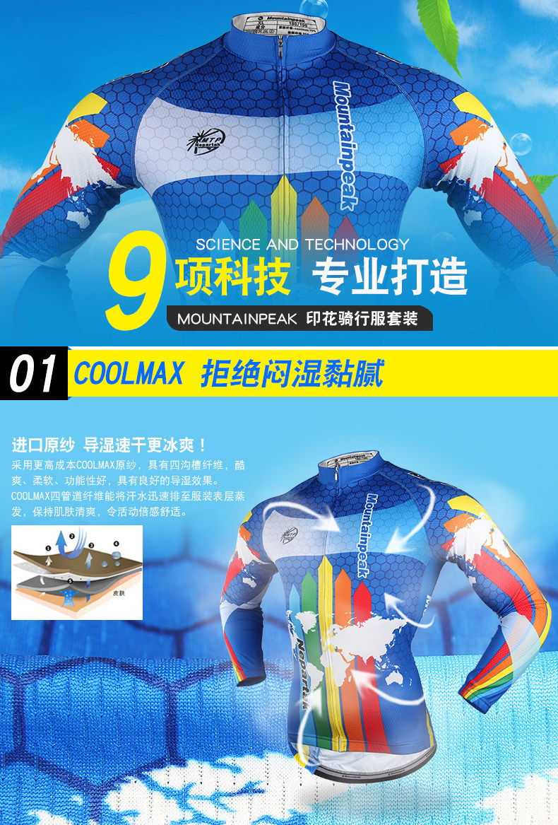 本产品上衣以COOLMAX与聚酯纤维的科学配比而成的面料,柔软透气,速干排汗。裤子采用锦纶与氨纶混织面料,腿部运动量大,这两种材料科学配比,不仅能提高伸展性,运动舒展性,也能减少皮肤及面料由于摩擦带来的损伤。不仅透气好而且排湿效果要更好。