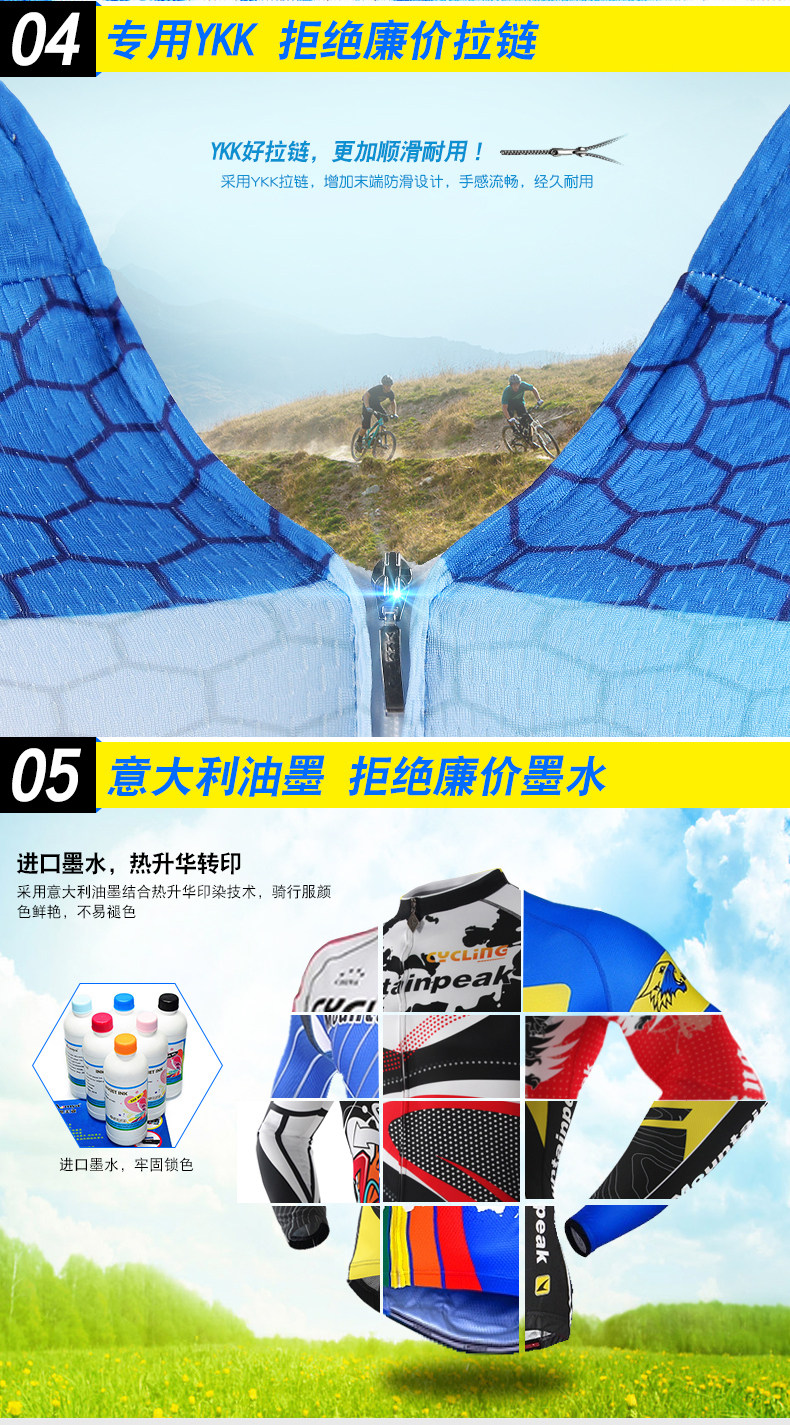 本店骑行服都是采用意大利油墨结合热升华印染技术,所以骑行服颜色鲜艳,不易褪色。真正的好印染技术可以让个别图案做到颜色渐变的效果,骑友可以多做对比才能发现其中的奥妙。