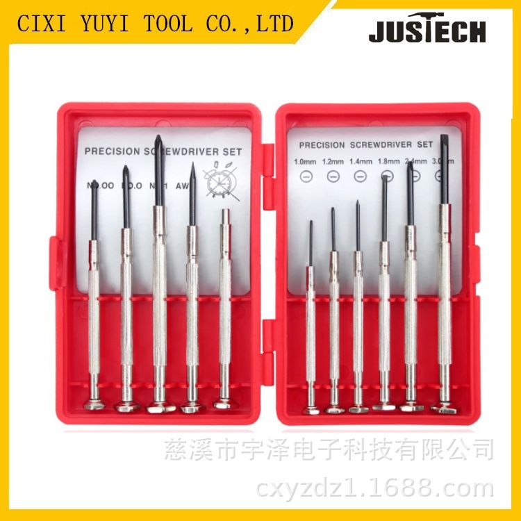 11피스 시계 수리 도구 세트, 빨간색 플라스틱 상자 포장, 시계/휴대폰 수리용 드라이버 세트