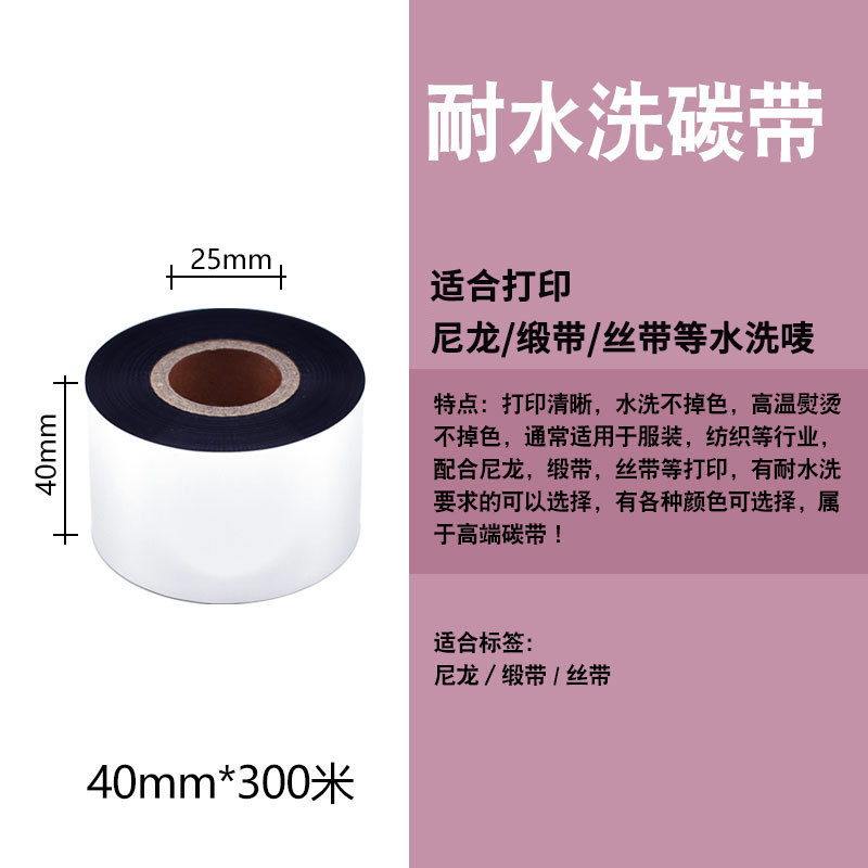 세탁 된 완전 수지 기반 탄소 테이프 롤 워시 의류 천 라벨 세척 밀 바코드 프린터 열 전사 리본 용지