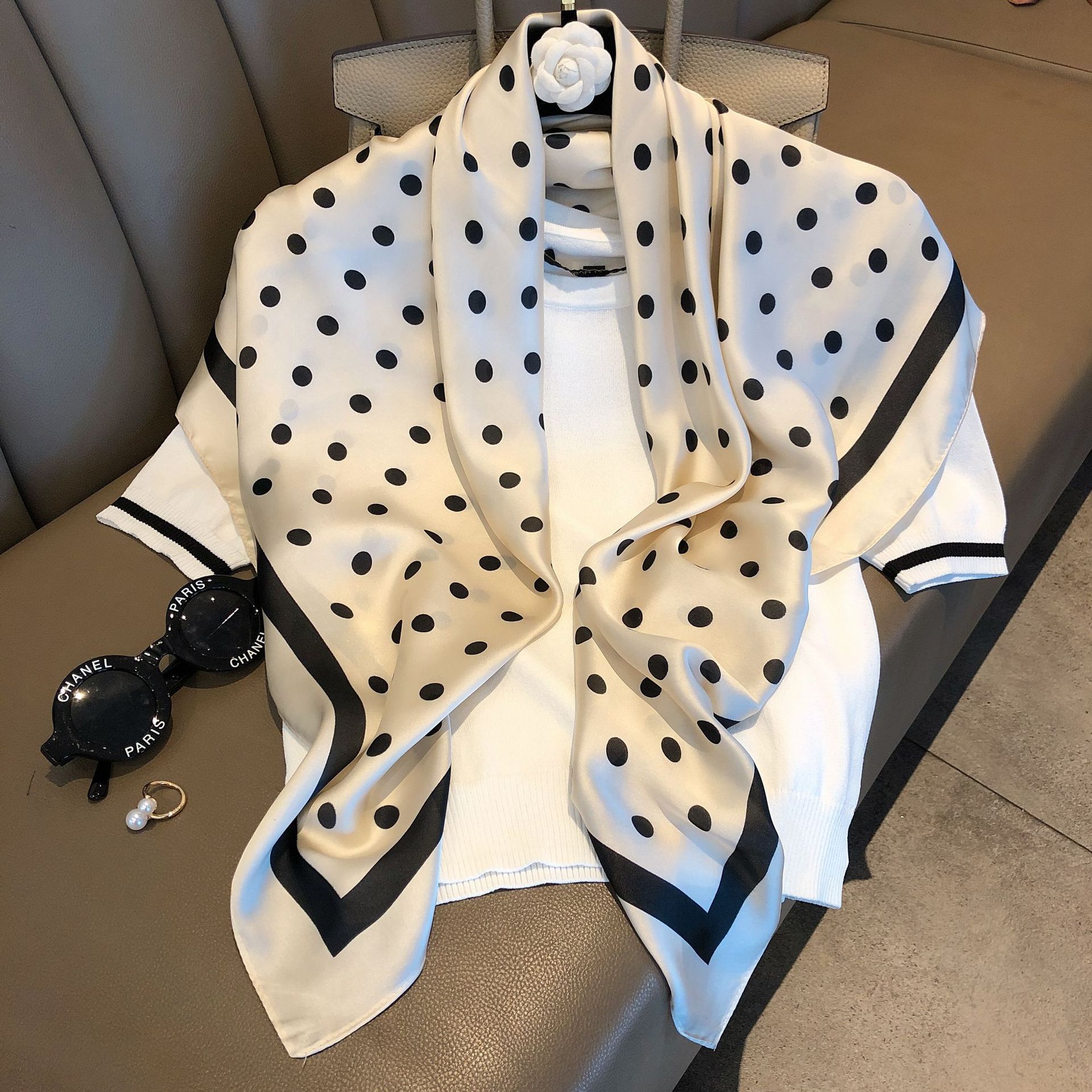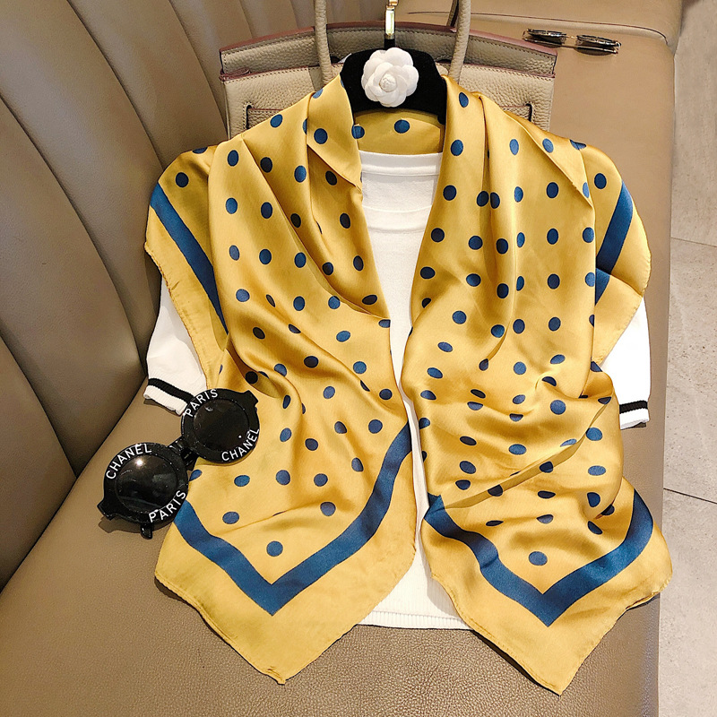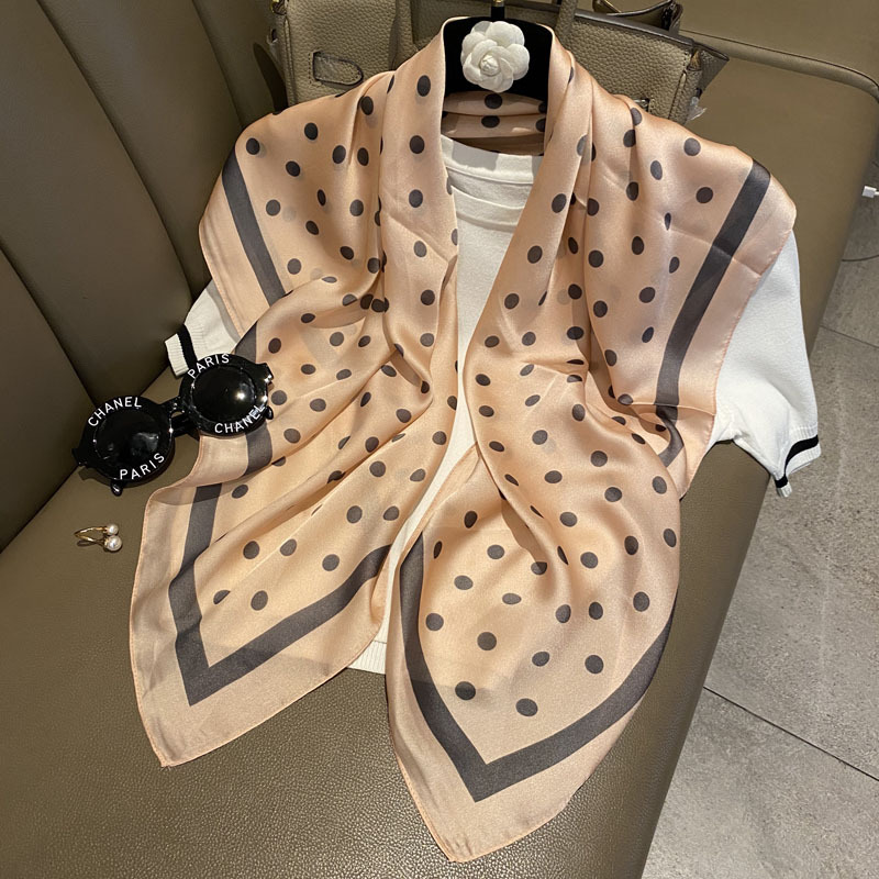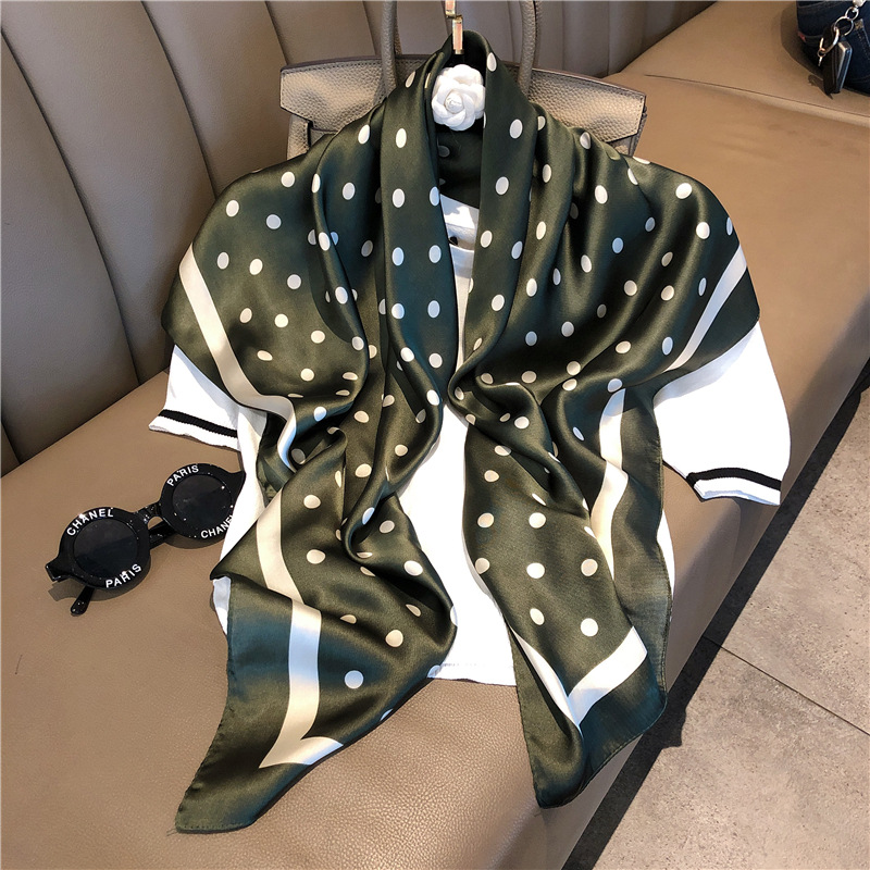 새로운 도착 한국 장식 격자 무늬 실크 스카프 모든 일치 레트로 폴라 도트 스카프 전문 여성의 예술적 인 스퀘어 스카프