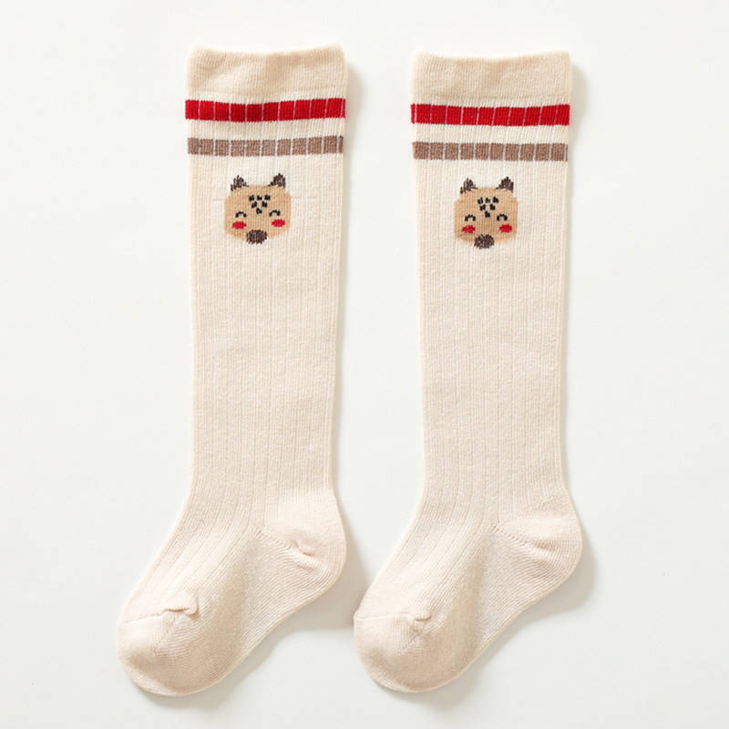 2024 한국산 순면 아동용 긴 양말, 학교 스타일 학생 양말, 줄무늬 만화 동물 아기 긴 양말 도매스토어 가기